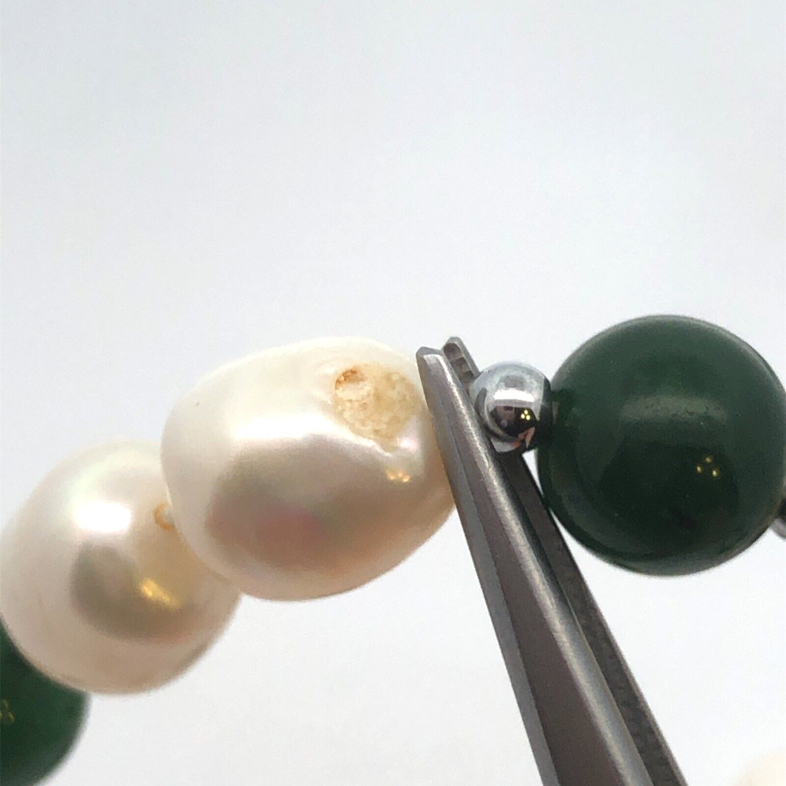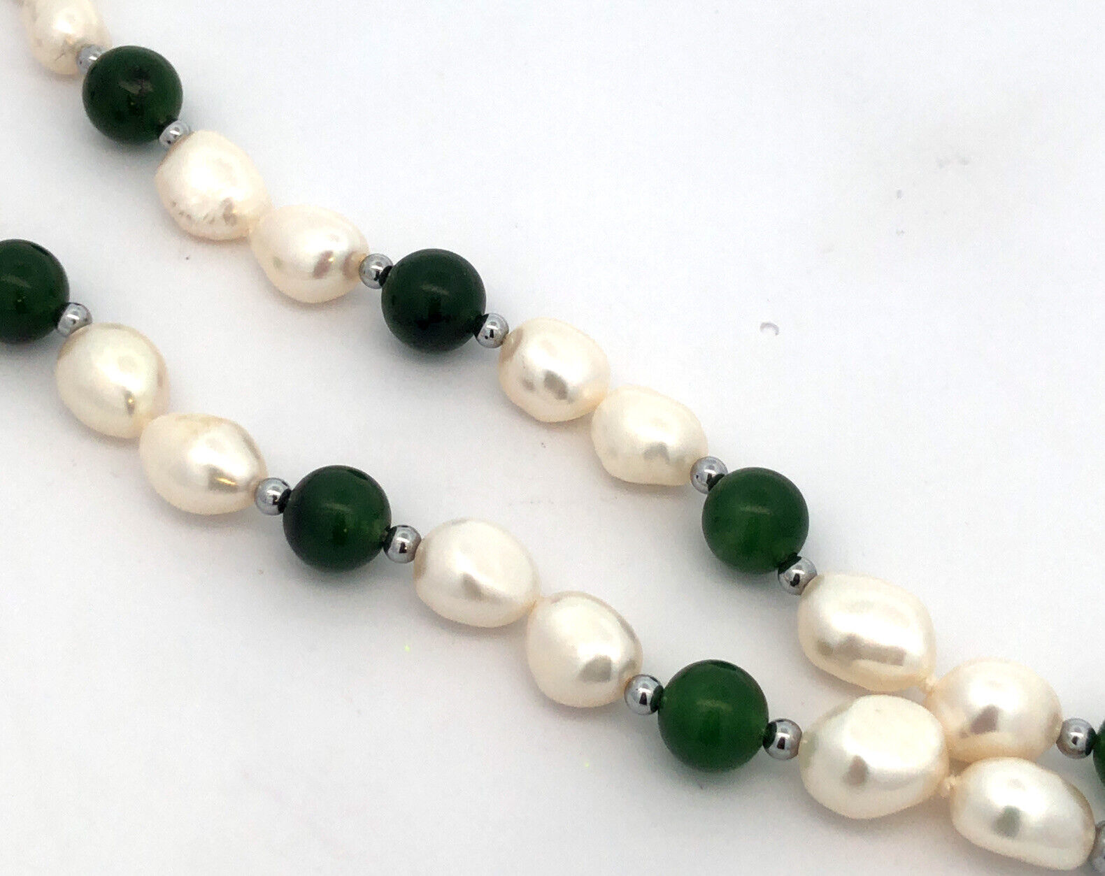 - Designer 925 Sterling Silver Pearl Jade Beaded Statement Necklace