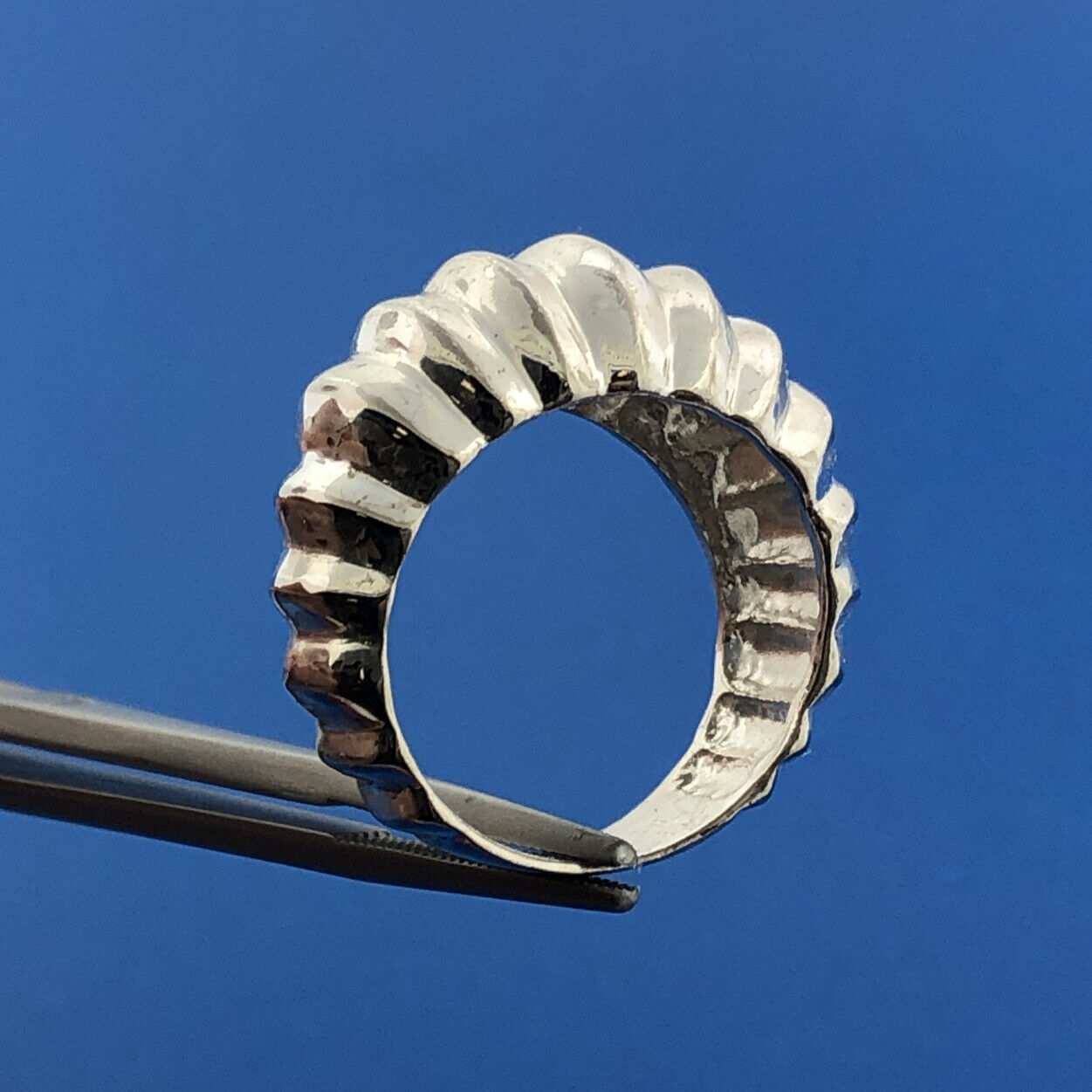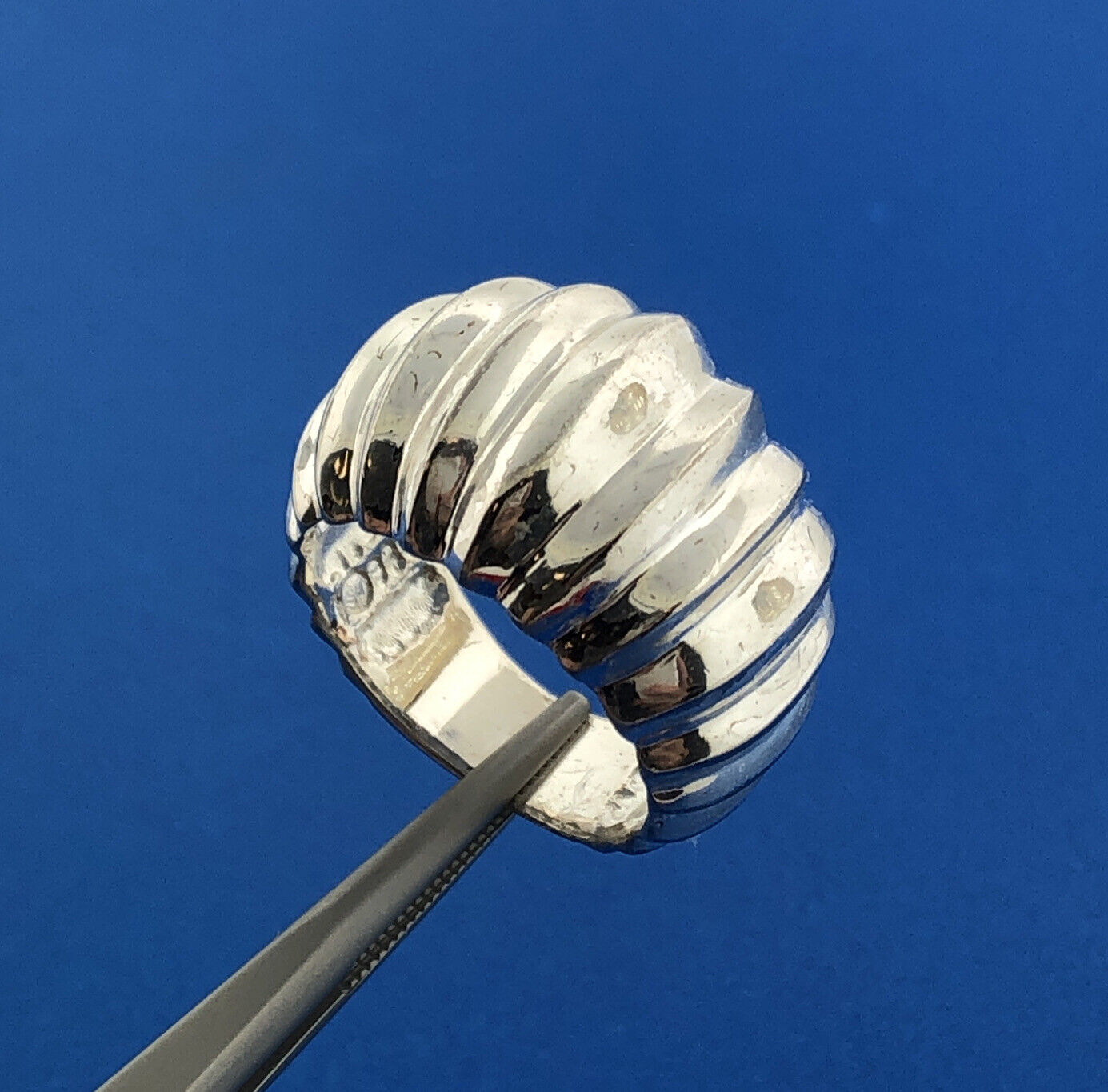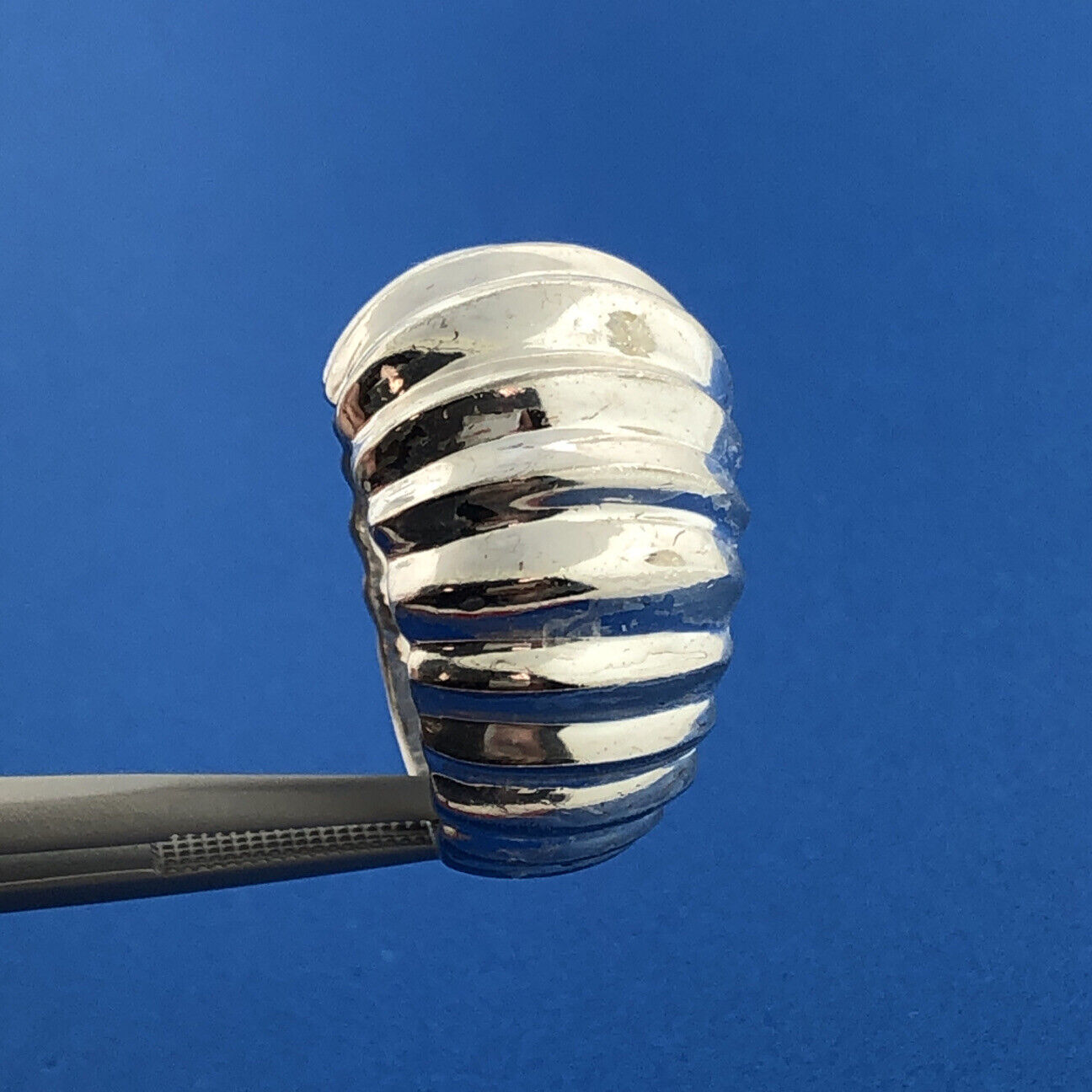 - Designer 925 Sterling Silver Ribbed Polished Statement Dome Ring