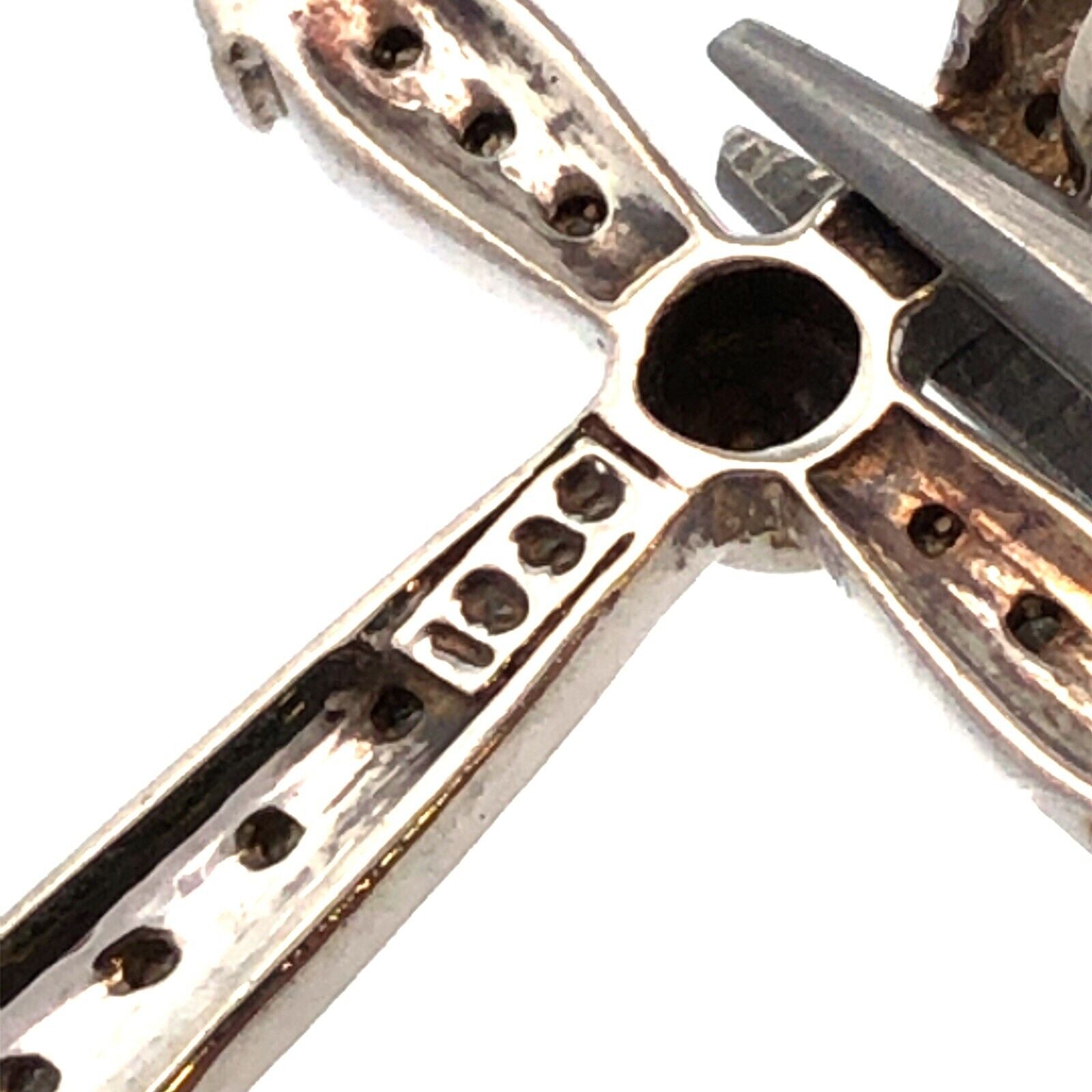 Designer SS 925 Sterling Silver Round Diamond Textured Cross Pendant