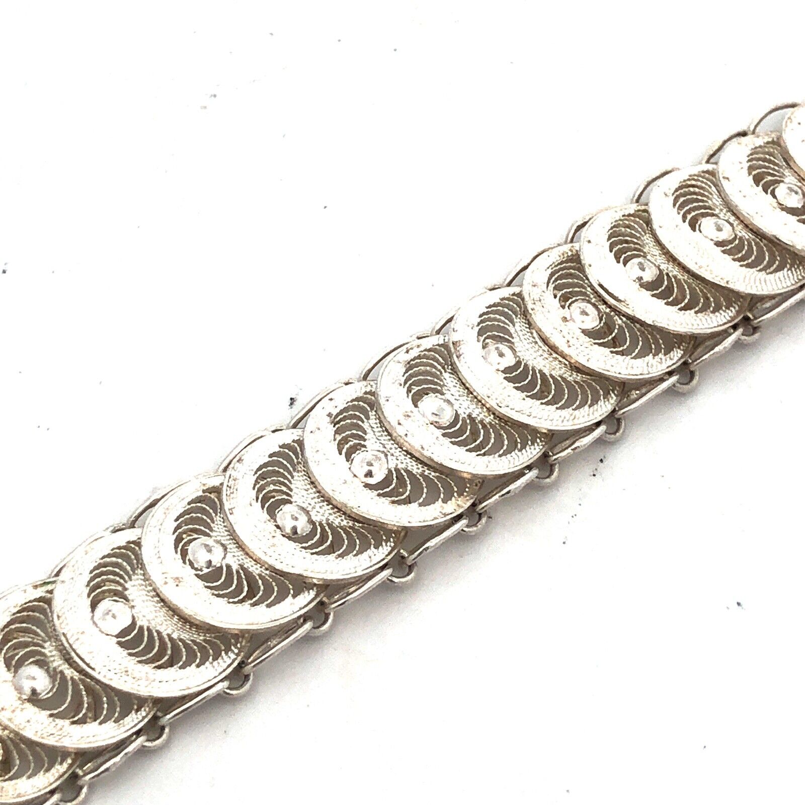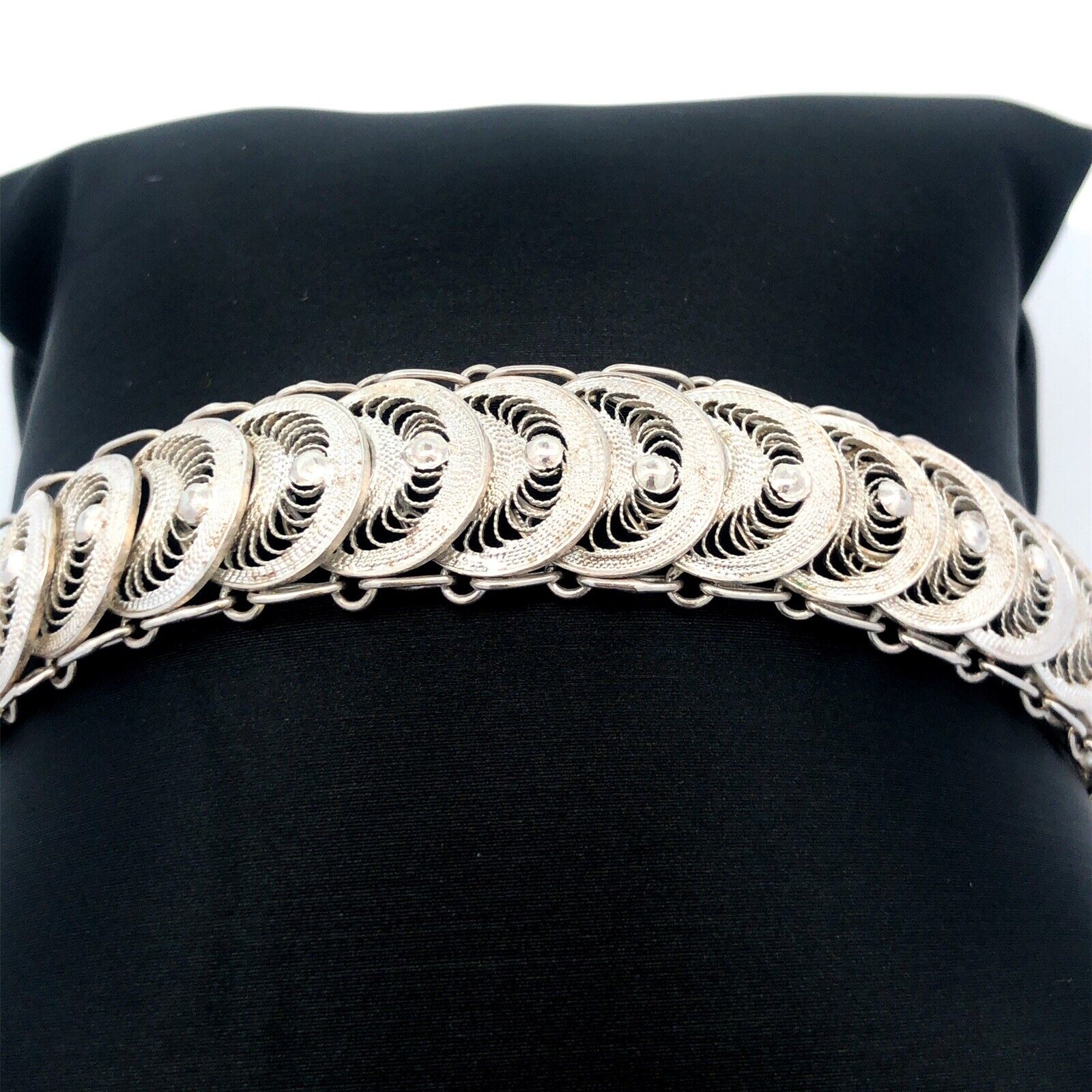 Designer 925 Sterling Silver Round Disc Panel Filigree Detail Toggle Bracelet