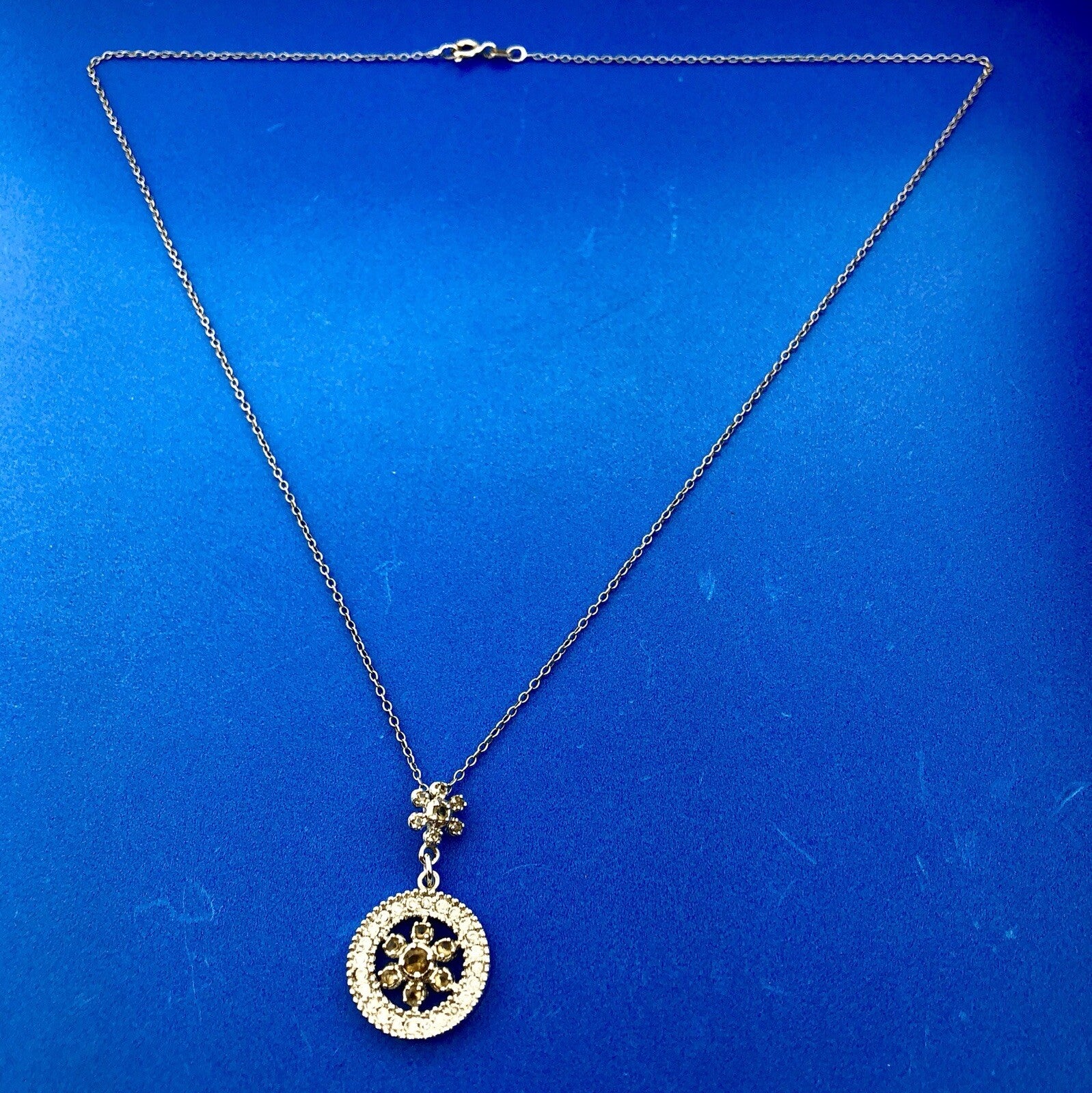 - Designer 925 Sterling Silver Topaz Diamond Floral Double Drop Pendant Necklace