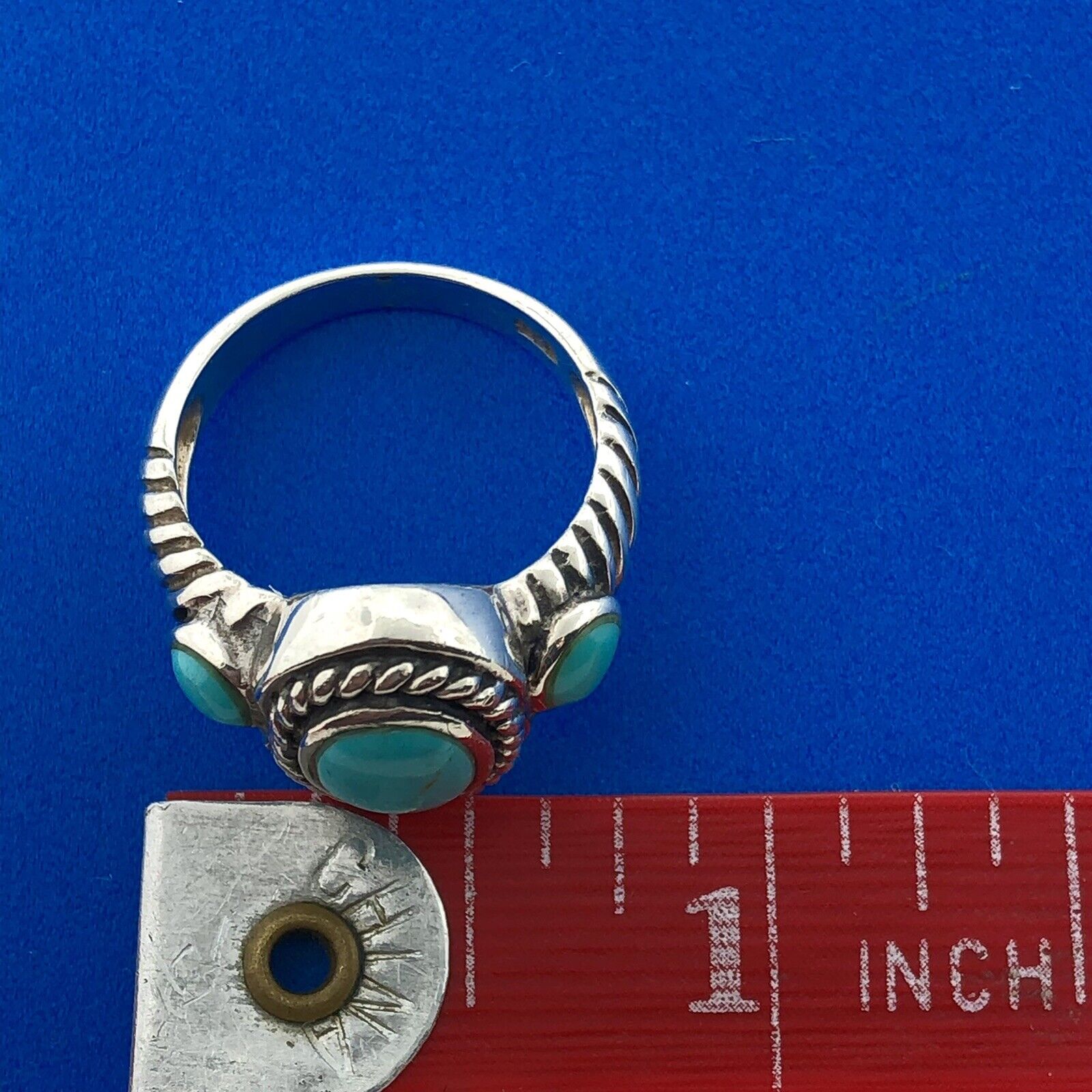 - Designer 925 Sterling Silver Turquoise Cabochon Balinese Style Ring
