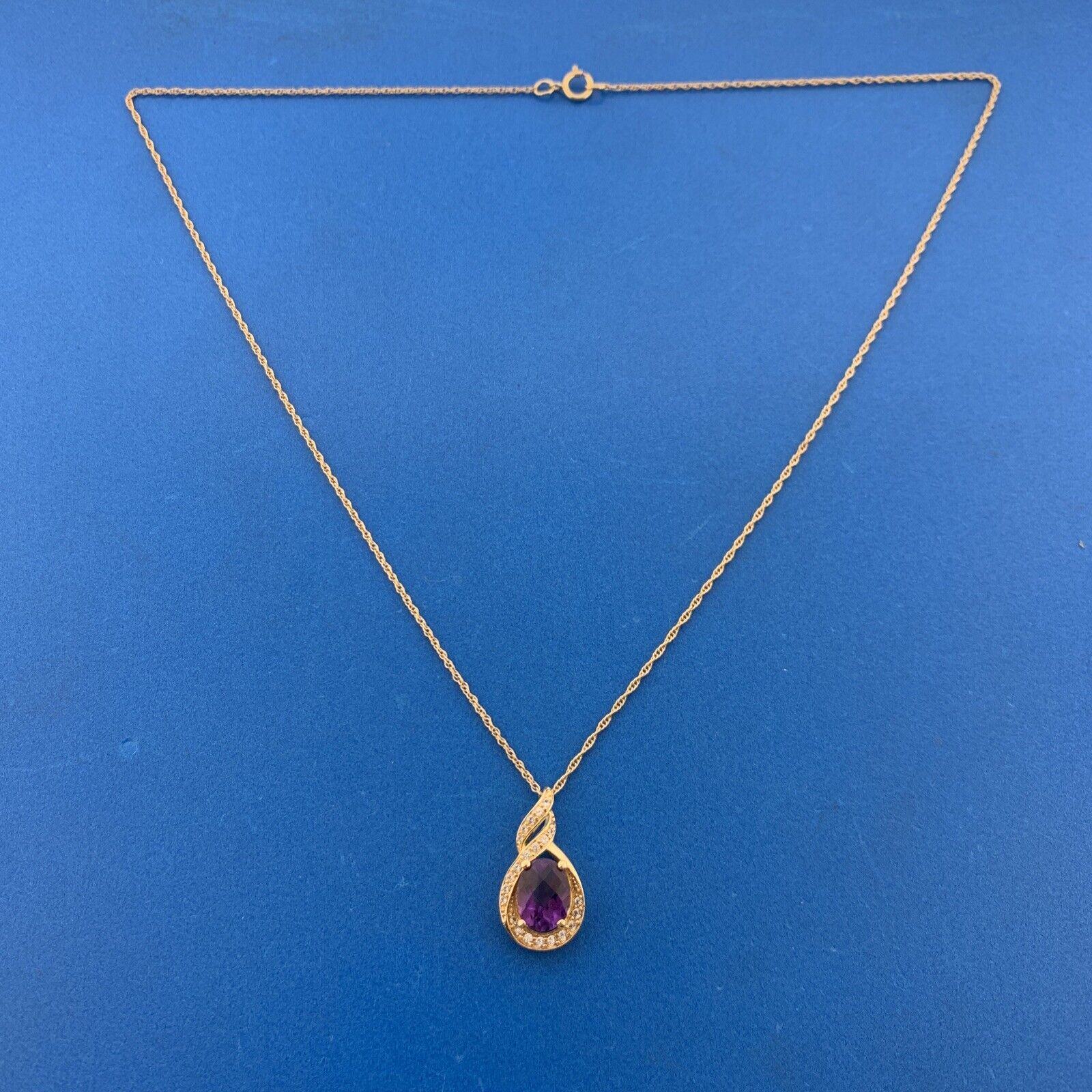 - Designer 925 Sterling Silver Vermeil Amethyst Diamond Drop Pendant Necklace