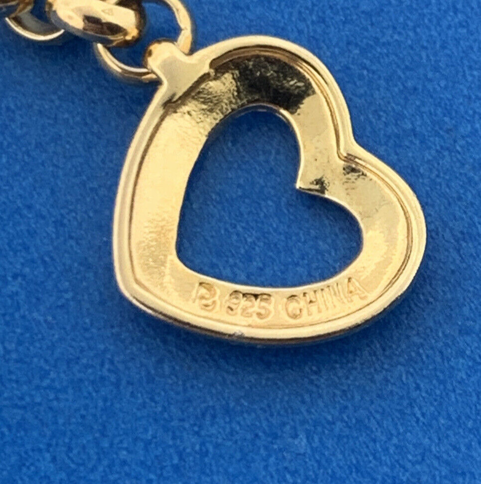 - Designer 925 Sterling Silver Vermeil Diamond 2 Tone Heart Panel Toggle Bracelet