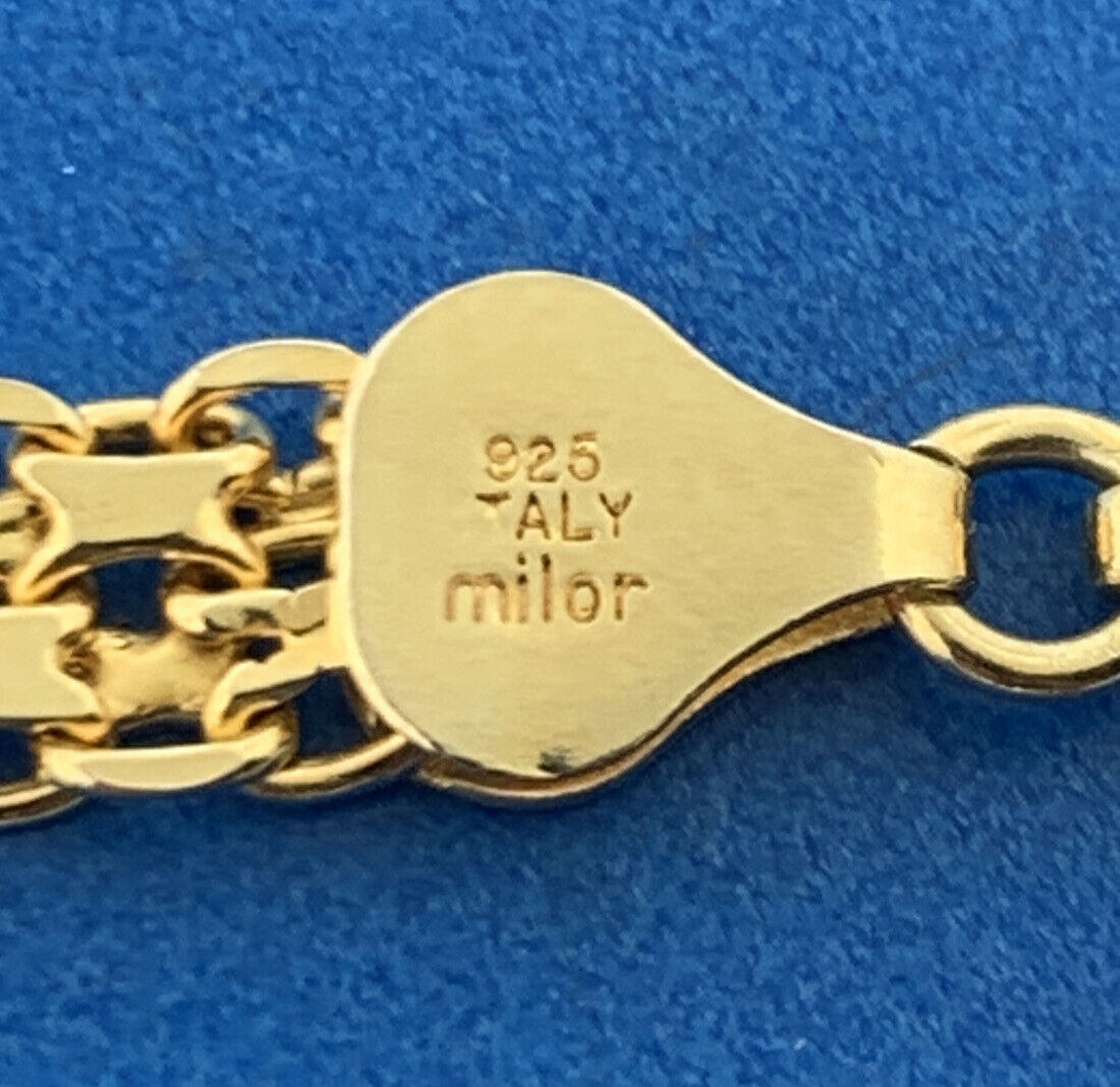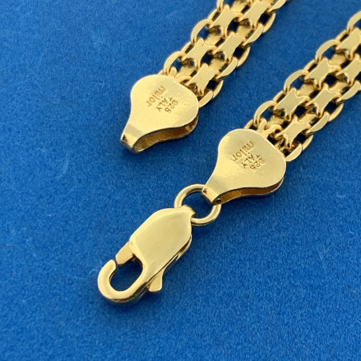 - Designer 925 Sterling Silver Vermeil Gold Toned Bar & Circle Mesh Link Bracelet