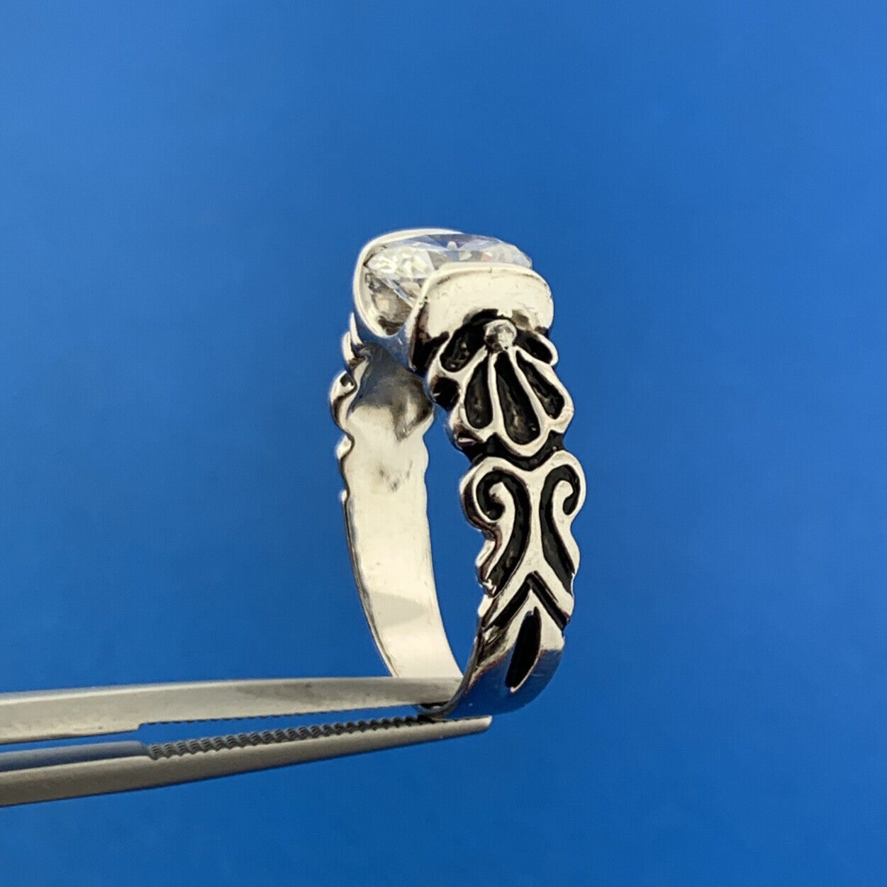 - Designer 925 Sterling Silver White Amethyst Solitaire Floral Scroll Ring