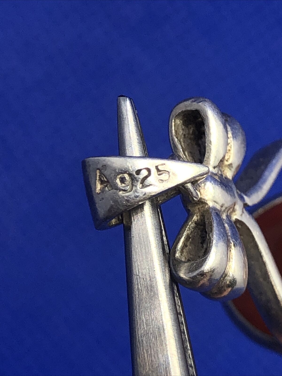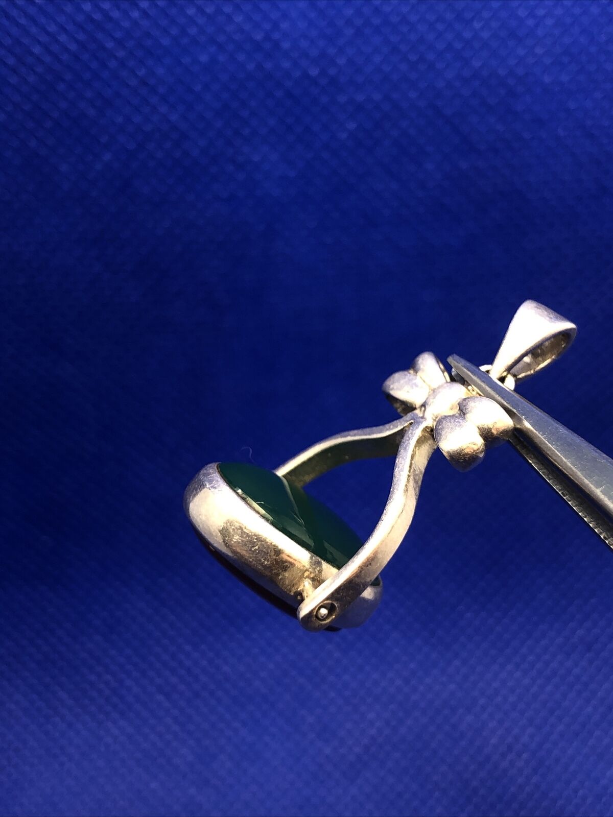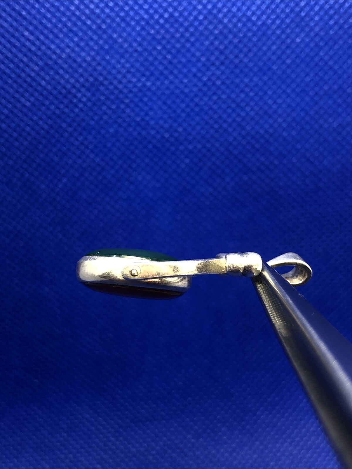 - Designer A 925 Sterling Silver Oval Green Onyx and Carnelian Bow Spinner Pendant