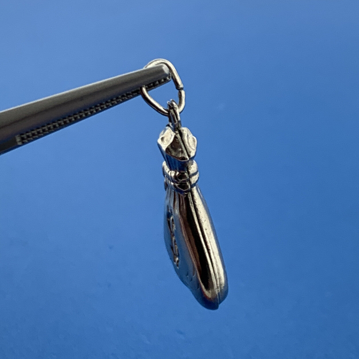 Designer AL Sterling Silver Double Money Bag $ Riches Good Luck Pendant Charm