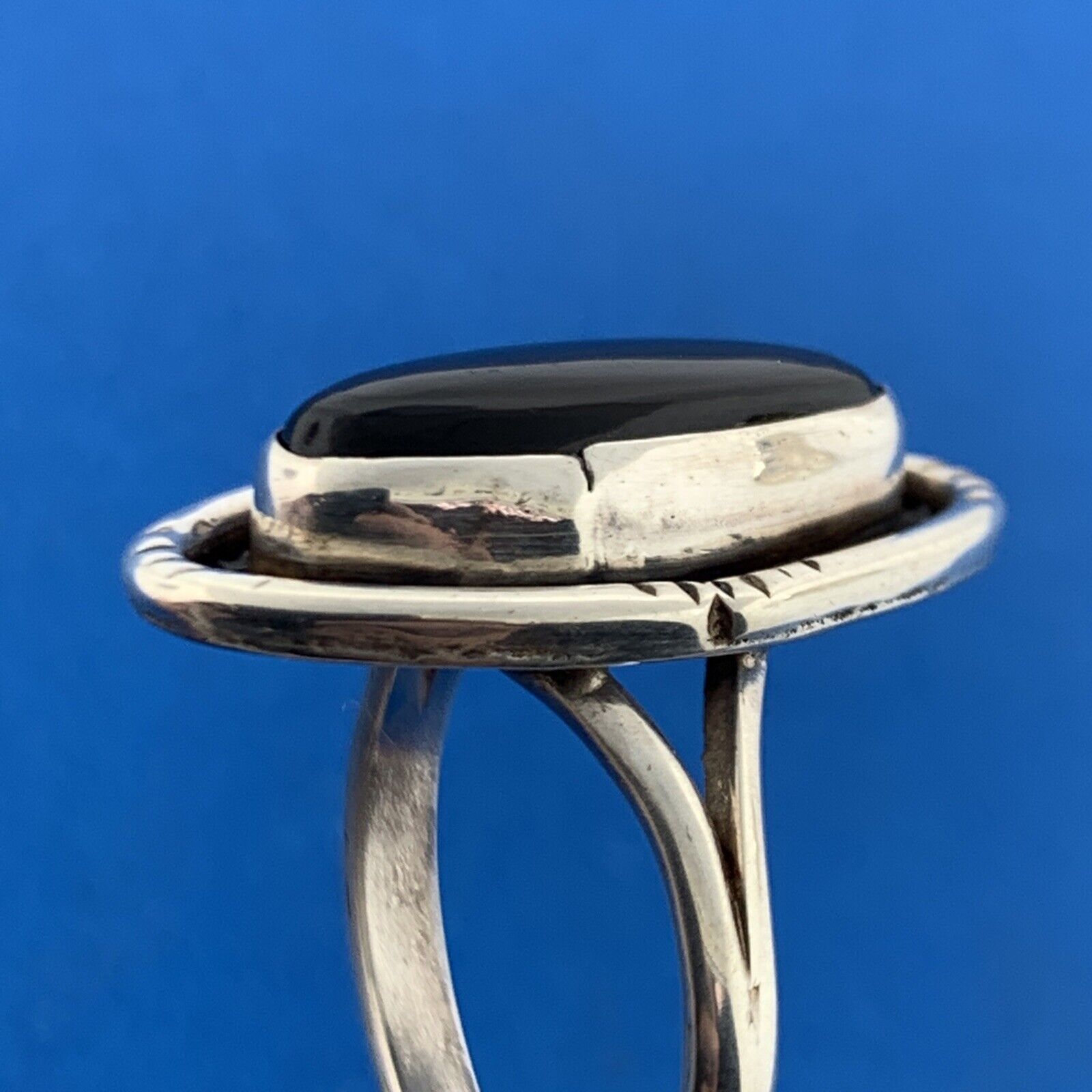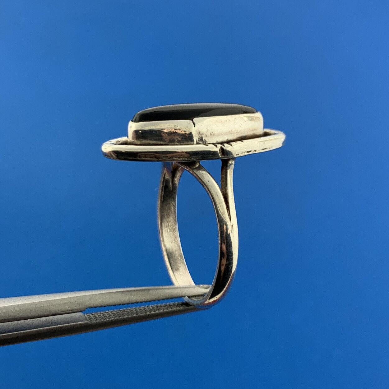 - Designer ALEX Sterling Silver 925 Cabochon Black Onyx Finger Ring Size 8.5