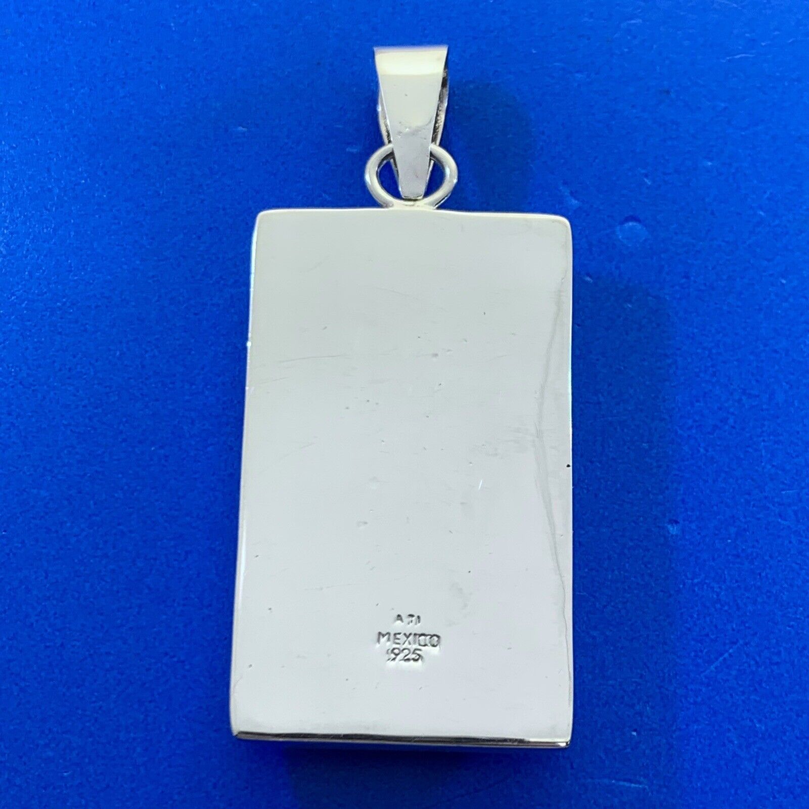 Designer ATI Mexico 925 Sterling Silver Black Enamel Rectangle Statement Pendant