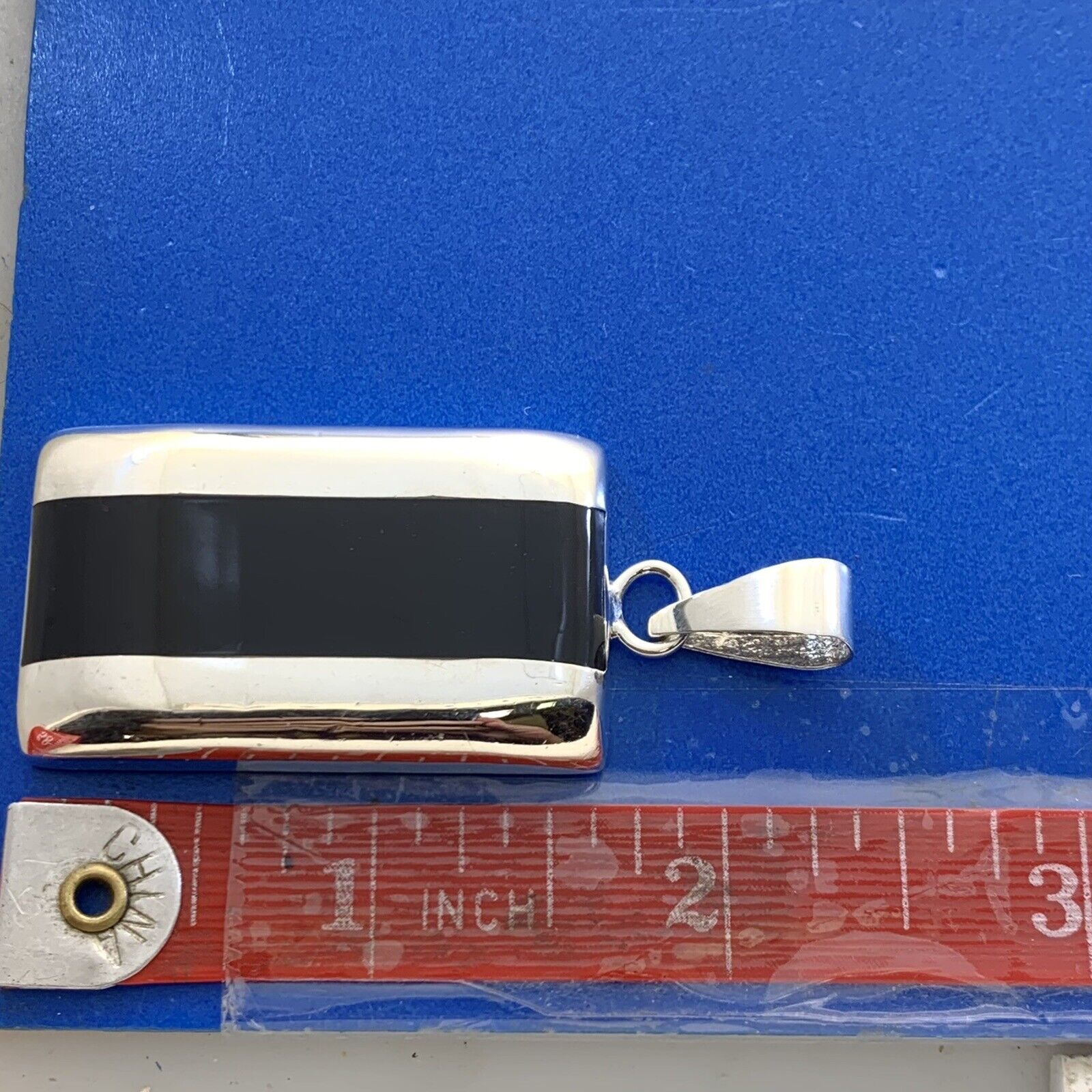 - Designer ATI Mexico 925 Sterling Silver Black Enamel Rectangle Statement Pendant