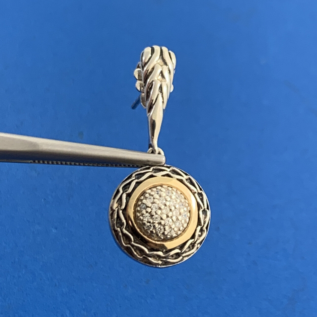 - Designer ATR 925 Sterling Silver 14K Gold Pave Diamond Dangle Drop Stud Earrings