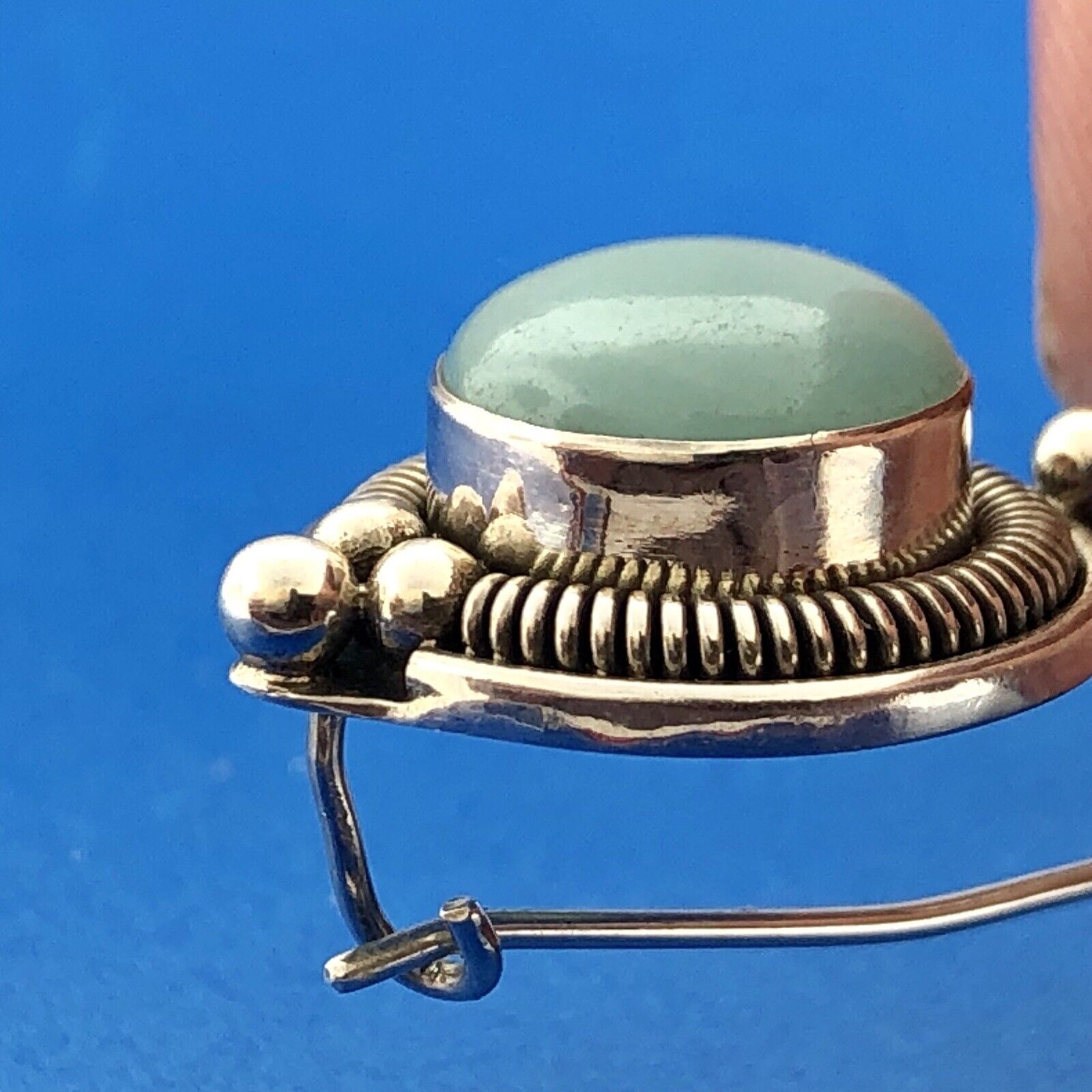 - Designer BA Sterling Silver 925 Blue Aventurine Bead Scroll Hook Drop Earrings