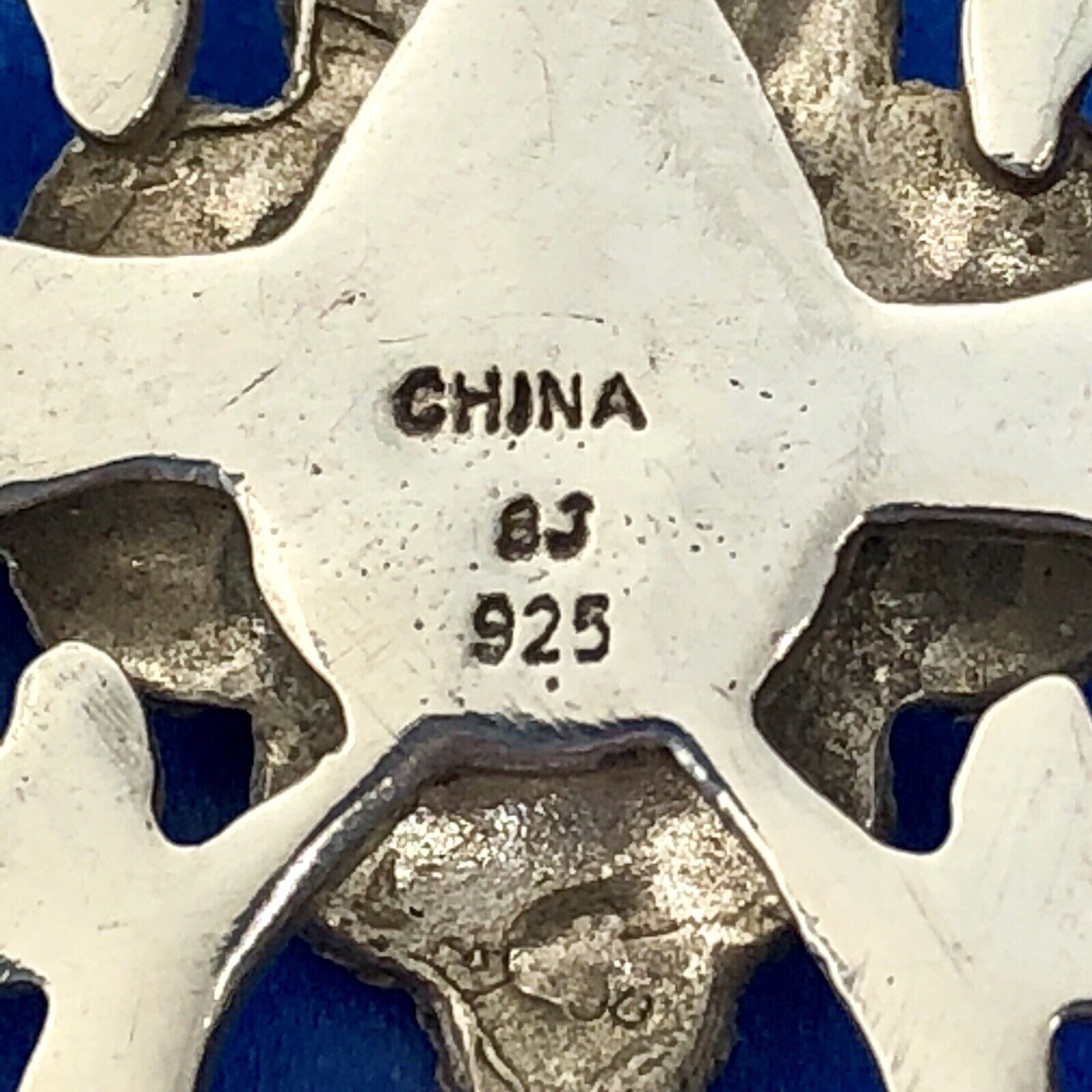 - Designer BJ Sterling Silver 925 Smoky Topaz Enamel Floral Scroll Dangle Earrings