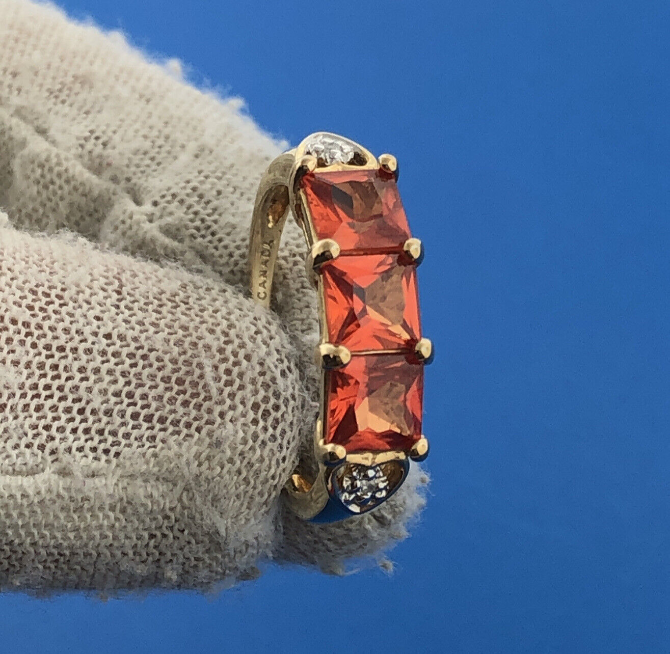 - Designer Canada Sterling Silver 925 Princess Trio Citrine Diamond Accent Ring