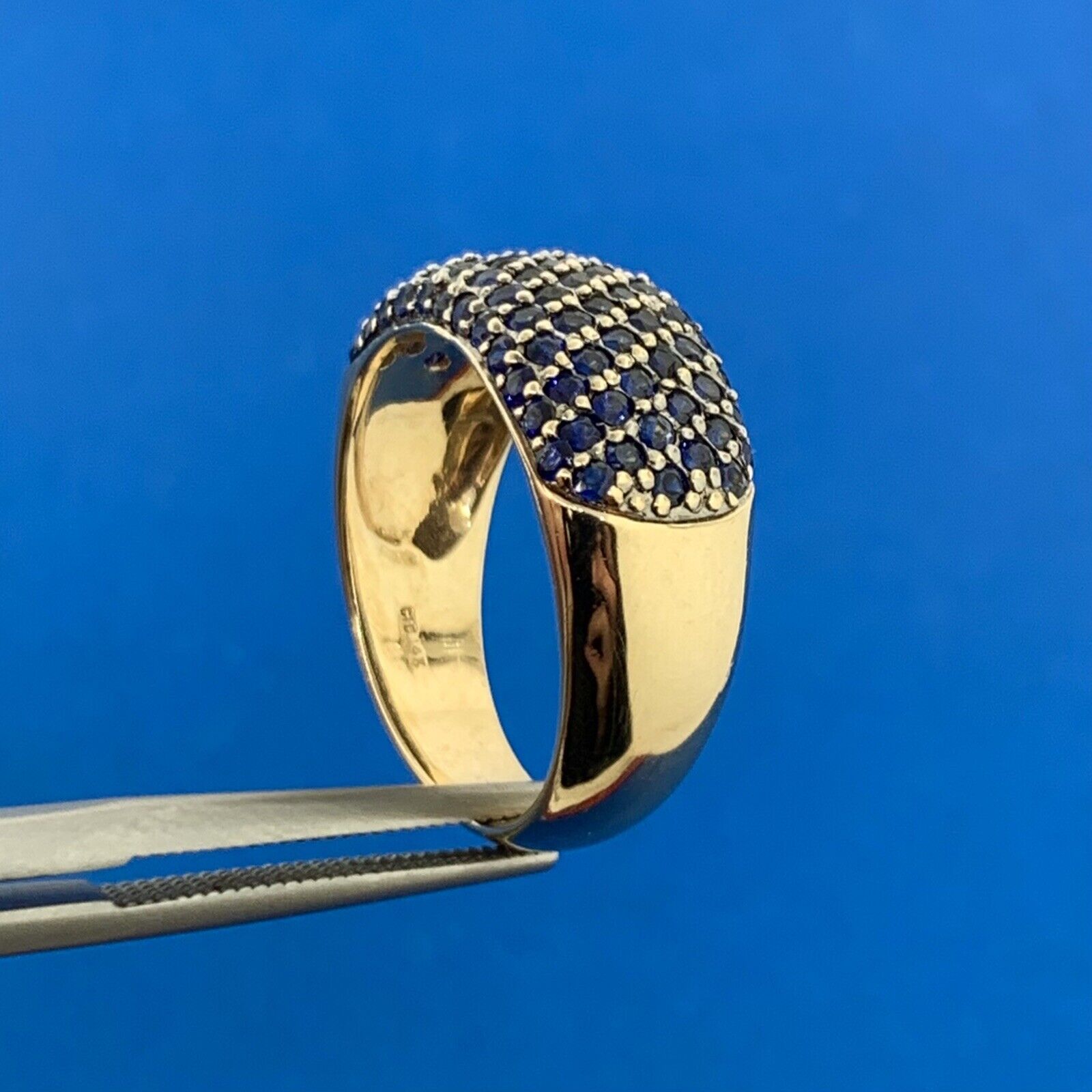 Designer CID 14K Yellow Gold Pave Blue Sapphire Band Ring