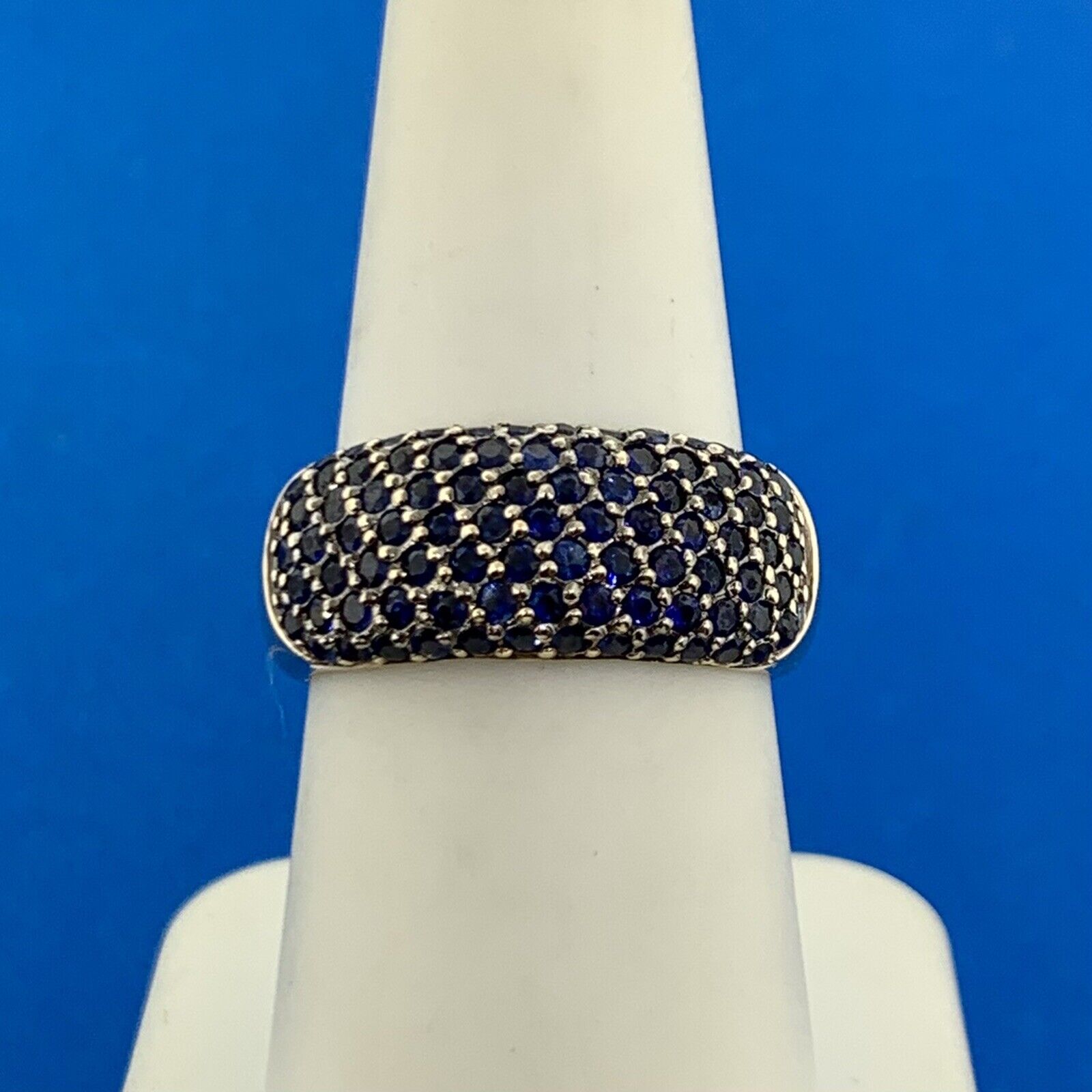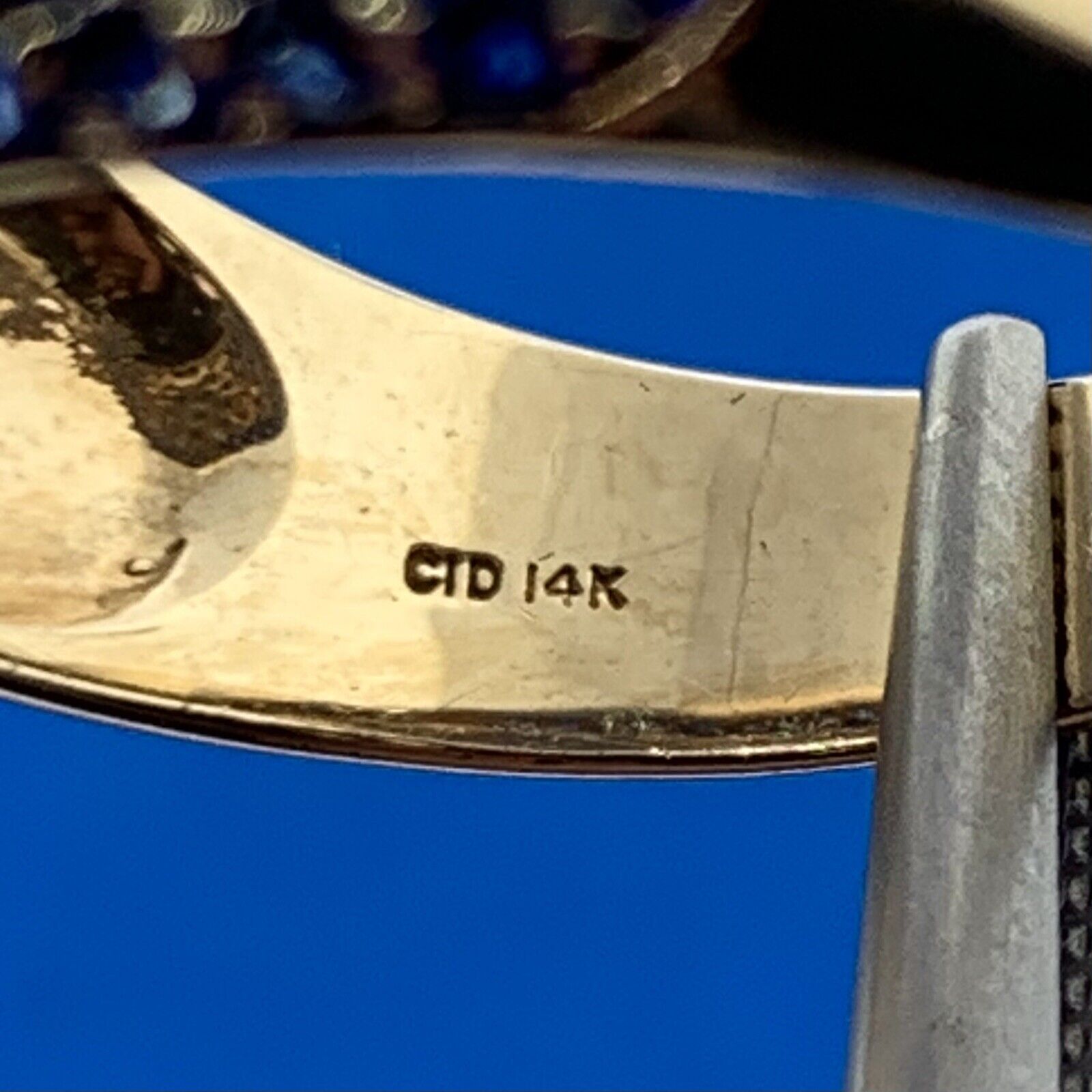 - Designer CID 14K Yellow Gold Pave Blue Sapphire Band Ring