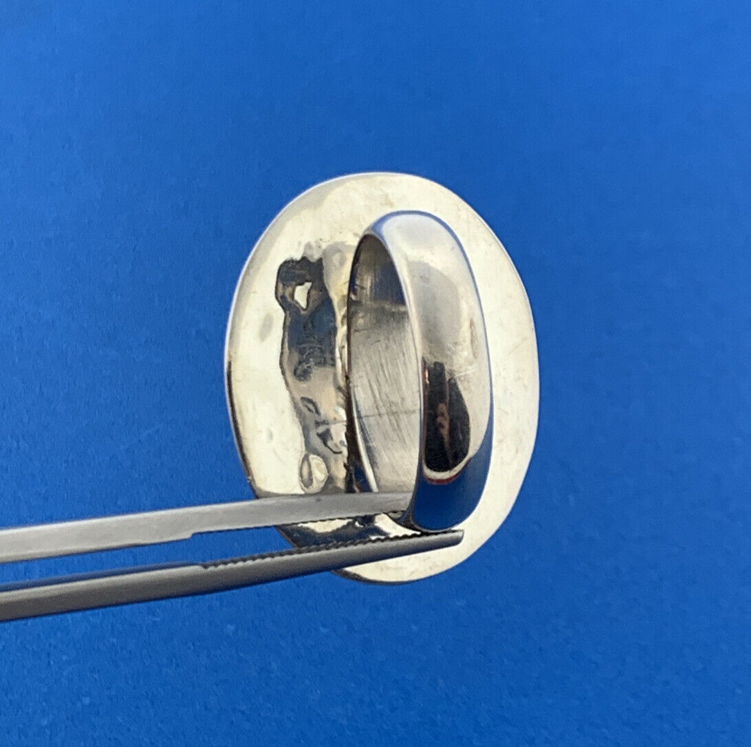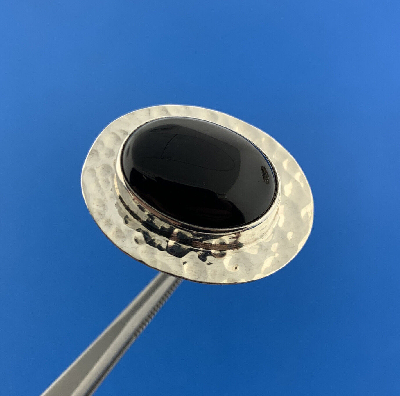 Designer CII Mexico 925 Sterling Silver Black Onyx Cabochon Hammered Halo Ring