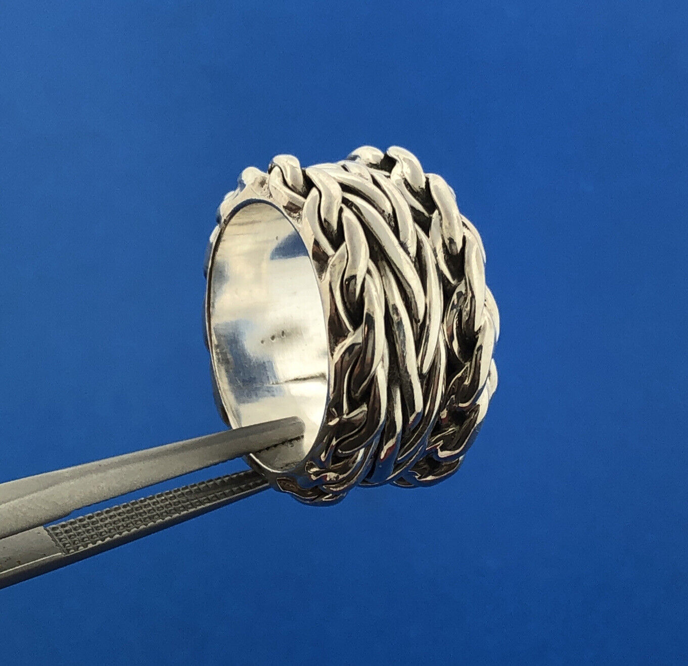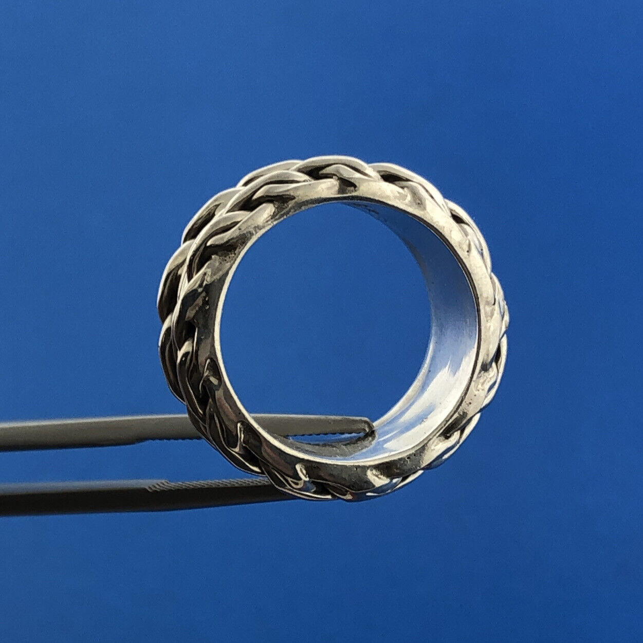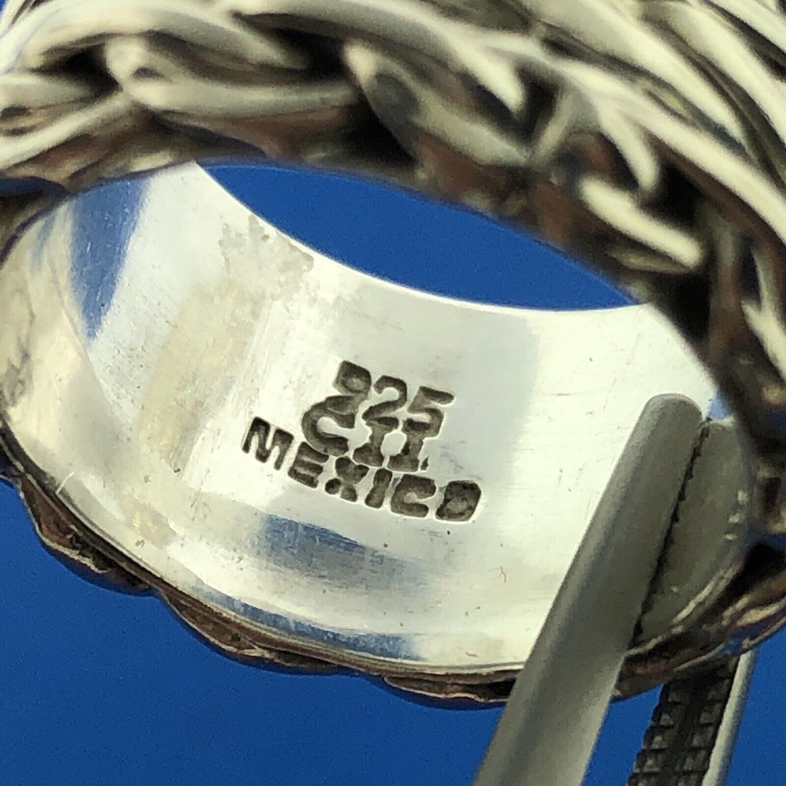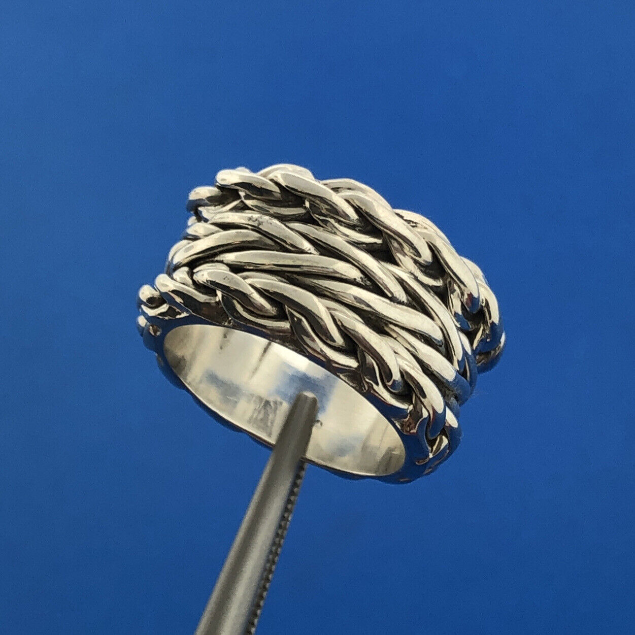 - Designer CII Mexico 925 Sterling Silver Rope Weave Wide Cigar Band Ring Size 5.5