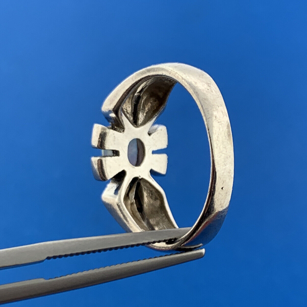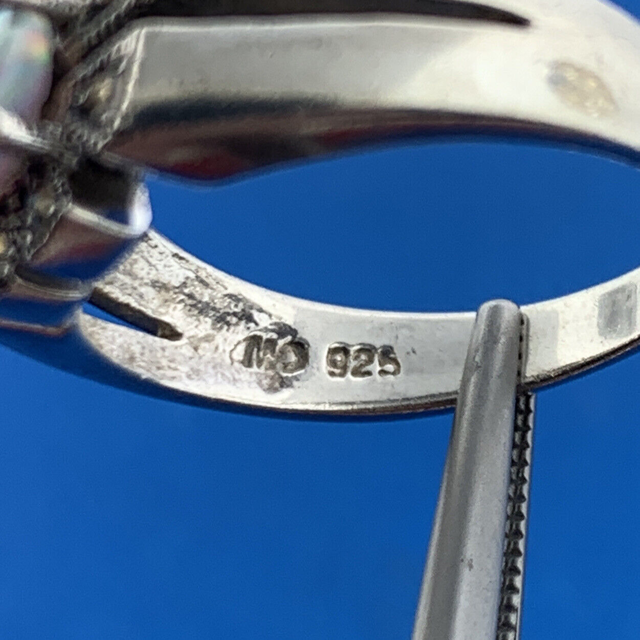 - Designer CII Mexico Sterling Silver 925 Opal Marcasite Flower Design Ring