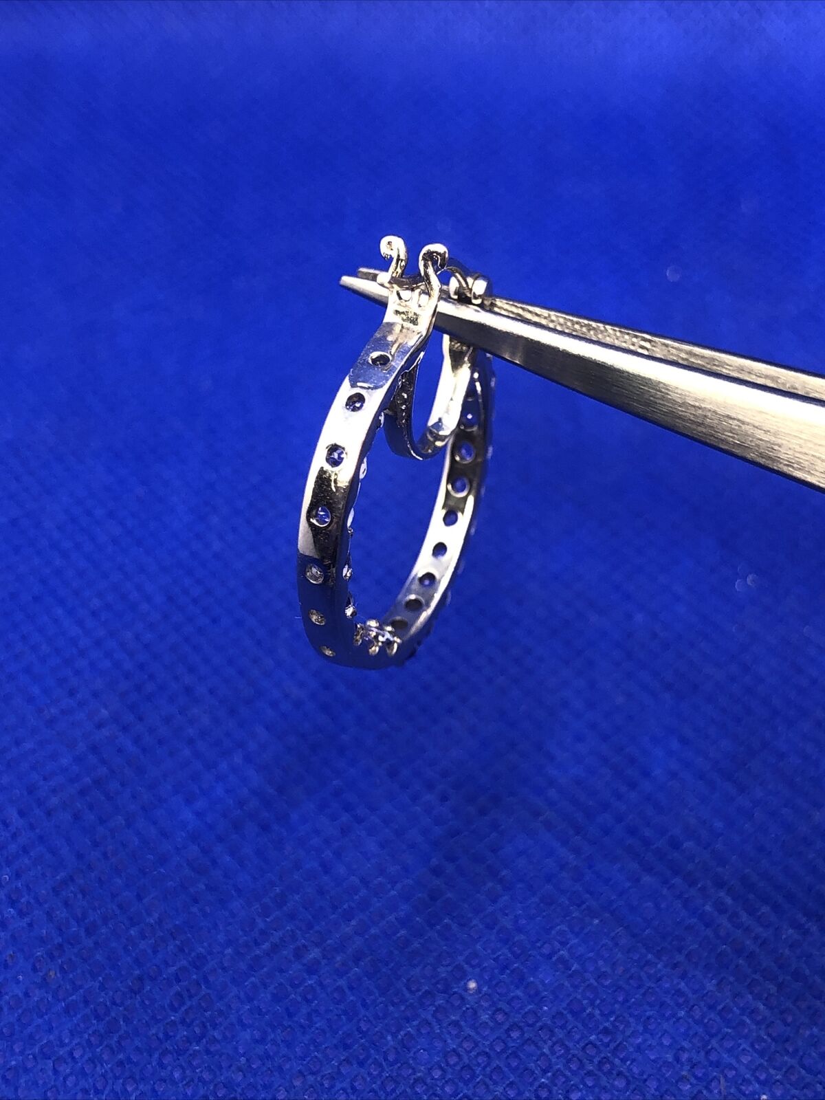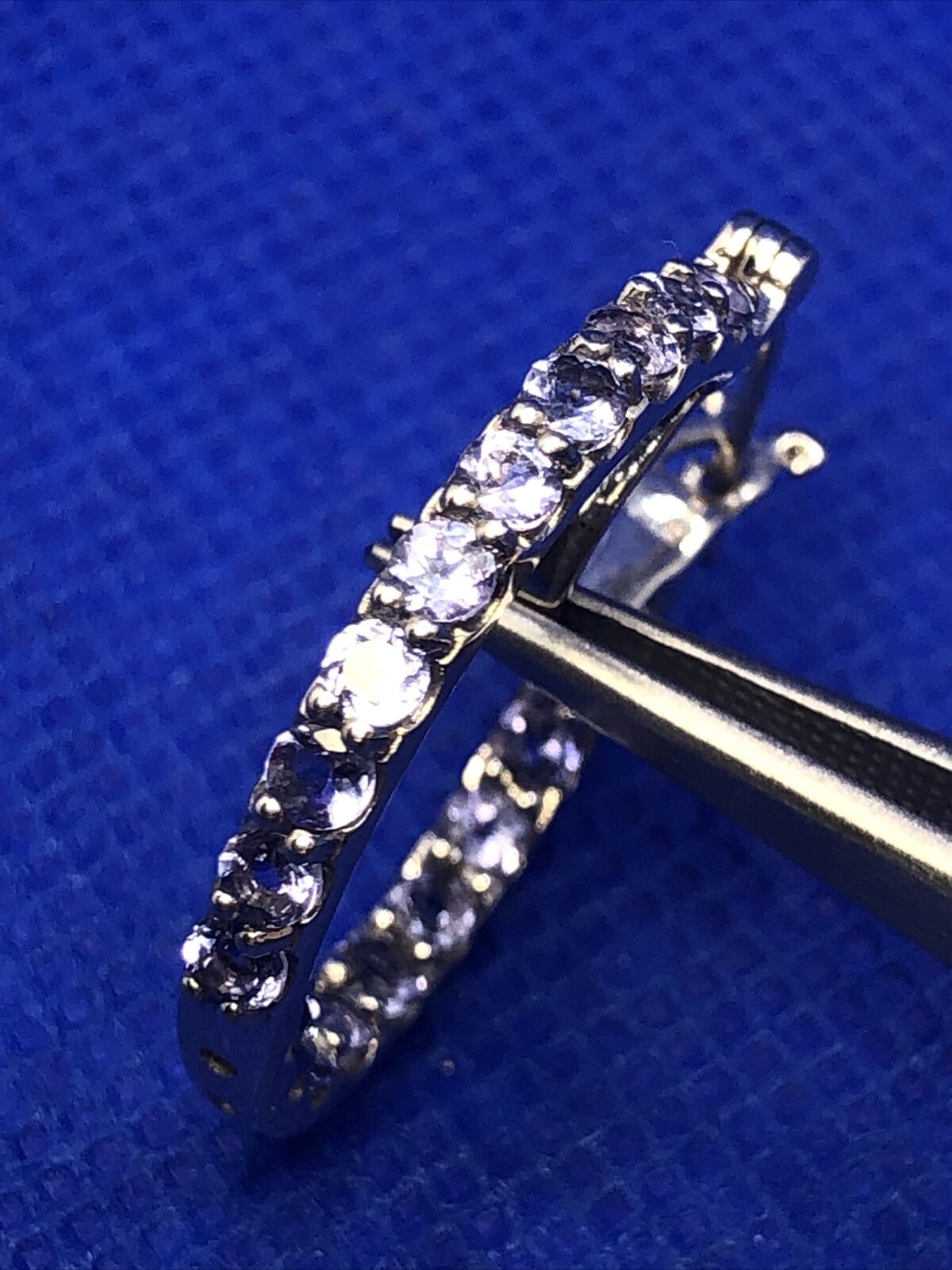 - Designer D'Joy 925 Sterling Silver Purple Tanzanite Round In/Out Hoop Earrings