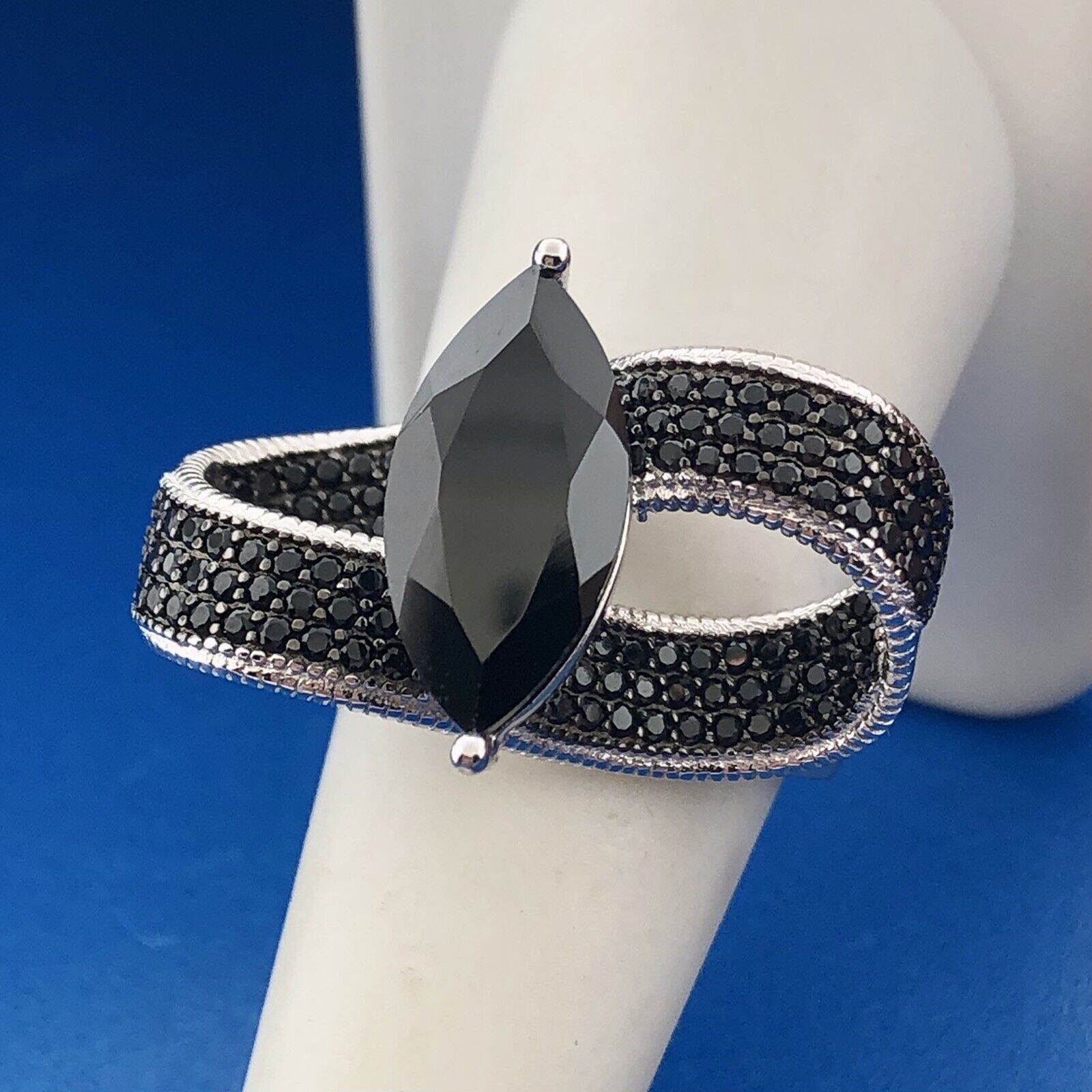 - Designer DK 925 Sterling Silver Black Spinel Modernist Bow Statement Ring