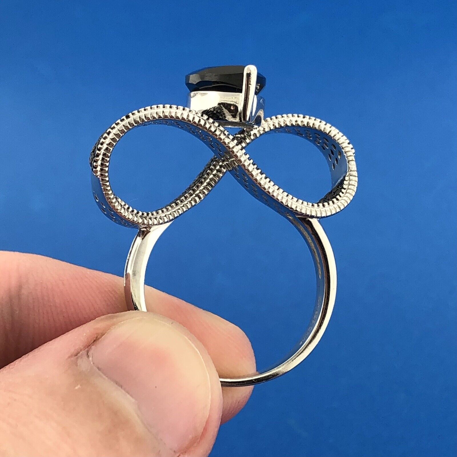 Designer DK 925 Sterling Silver Black Spinel Modernist Bow Statement Ring