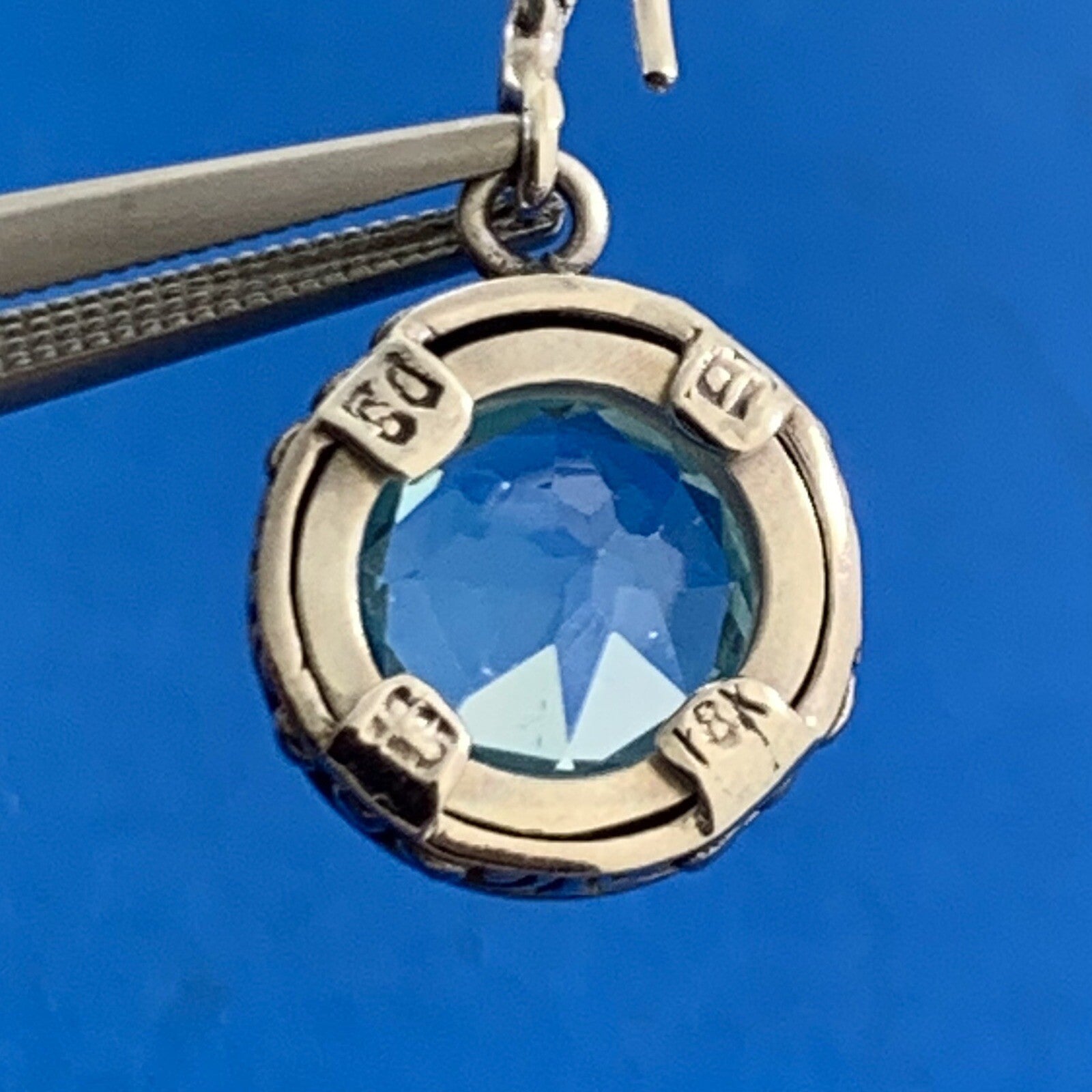 - Designer DS ID Sterling Silver 18K Yellow Gold Round Blue Topaz Dangle Earrings