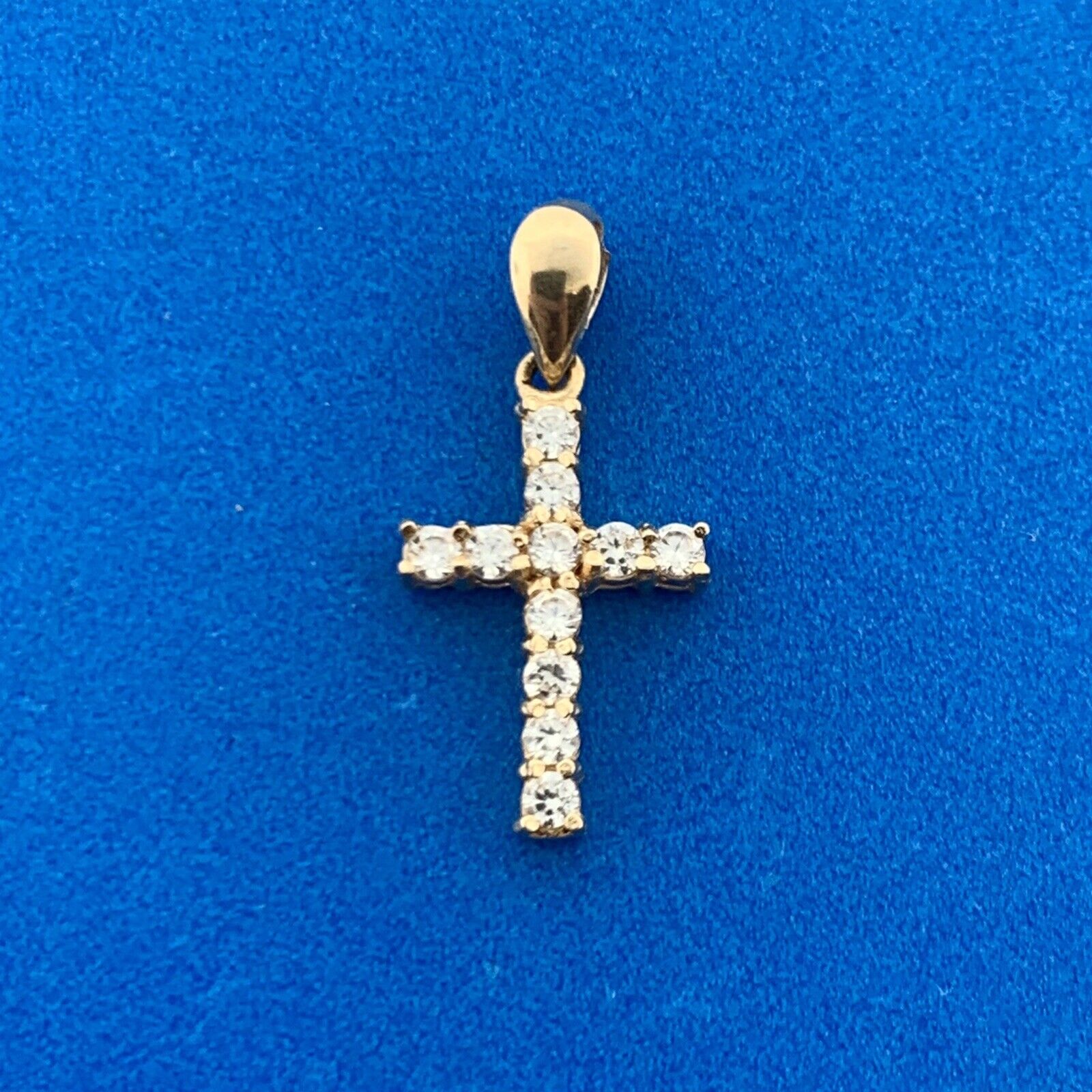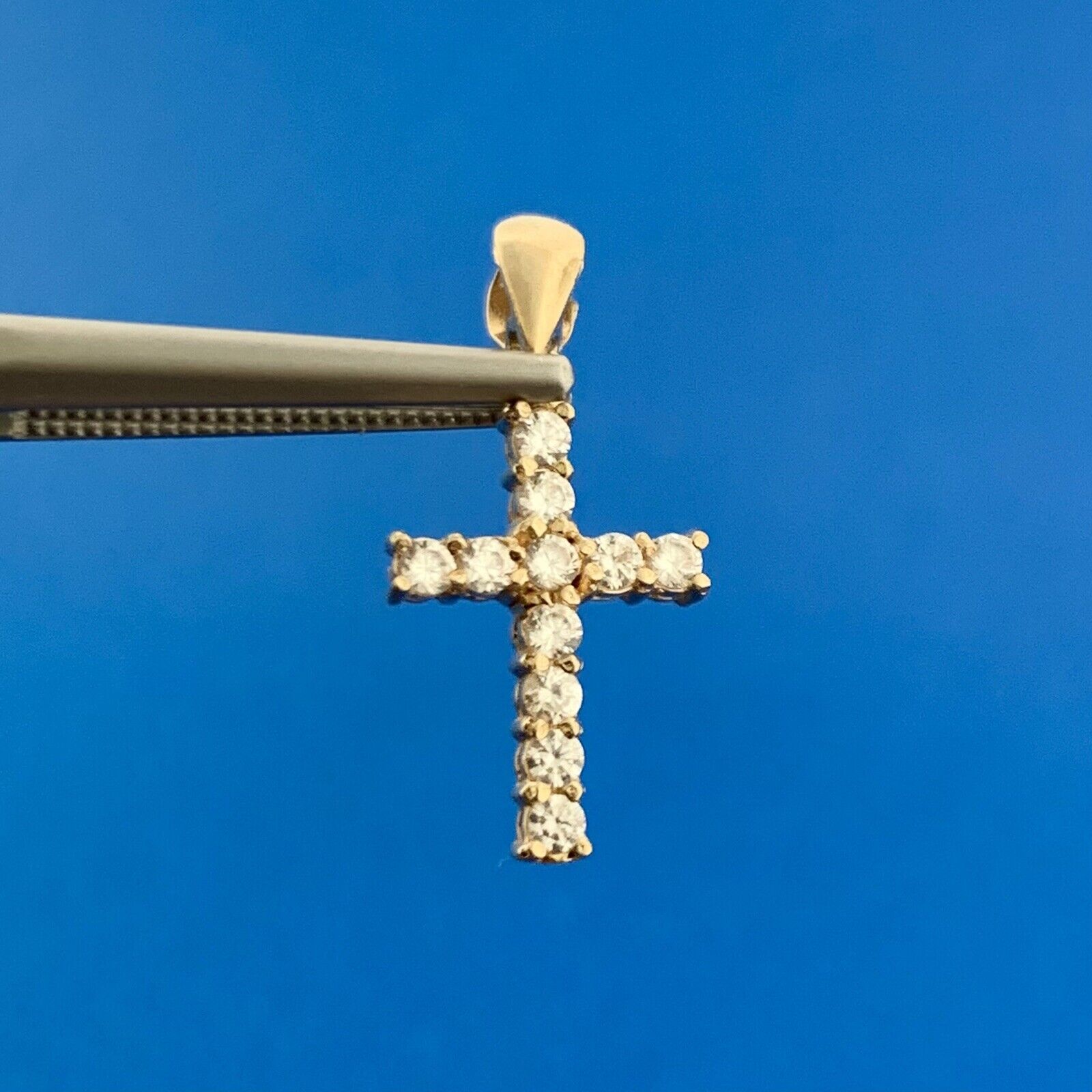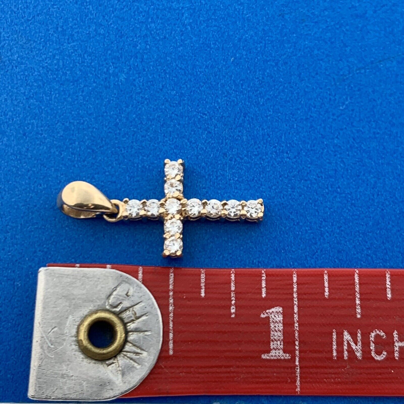 - Designer DT 14k Yellow Gold Sparkling CZ Precious Religious Cross Dangle Pendant