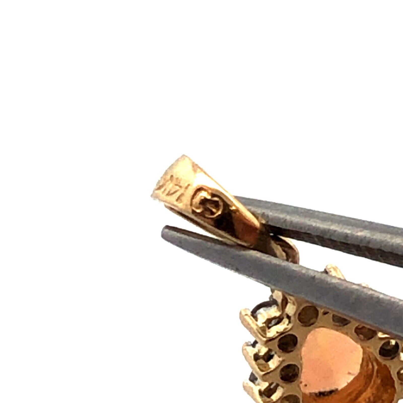 Designer EC 14K Yellow Gold Pear Cut White Opal Diamond Halo Pendant