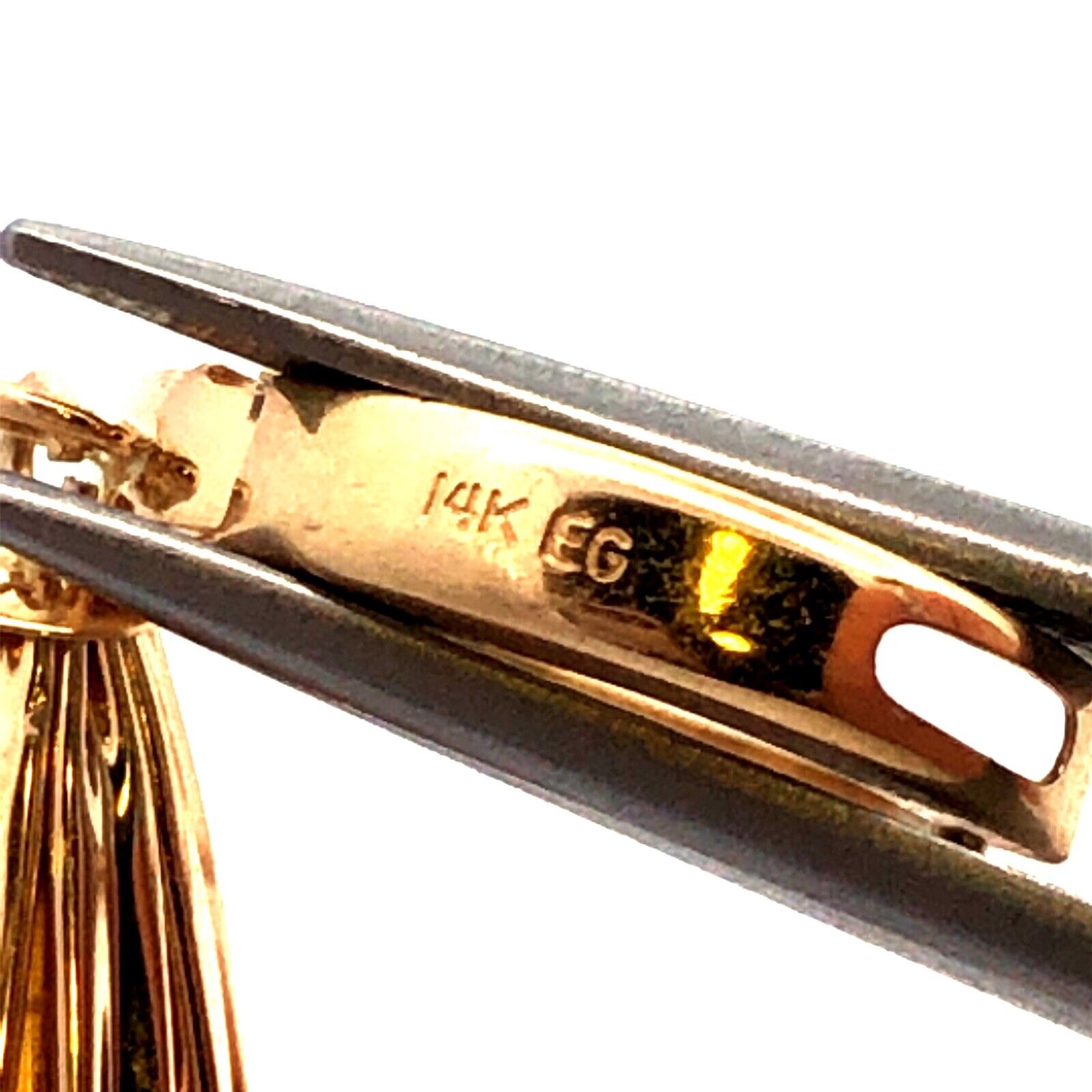 Designer EG 14K Yellow Gold Textured Teardrop Dangle Hoop Earrings