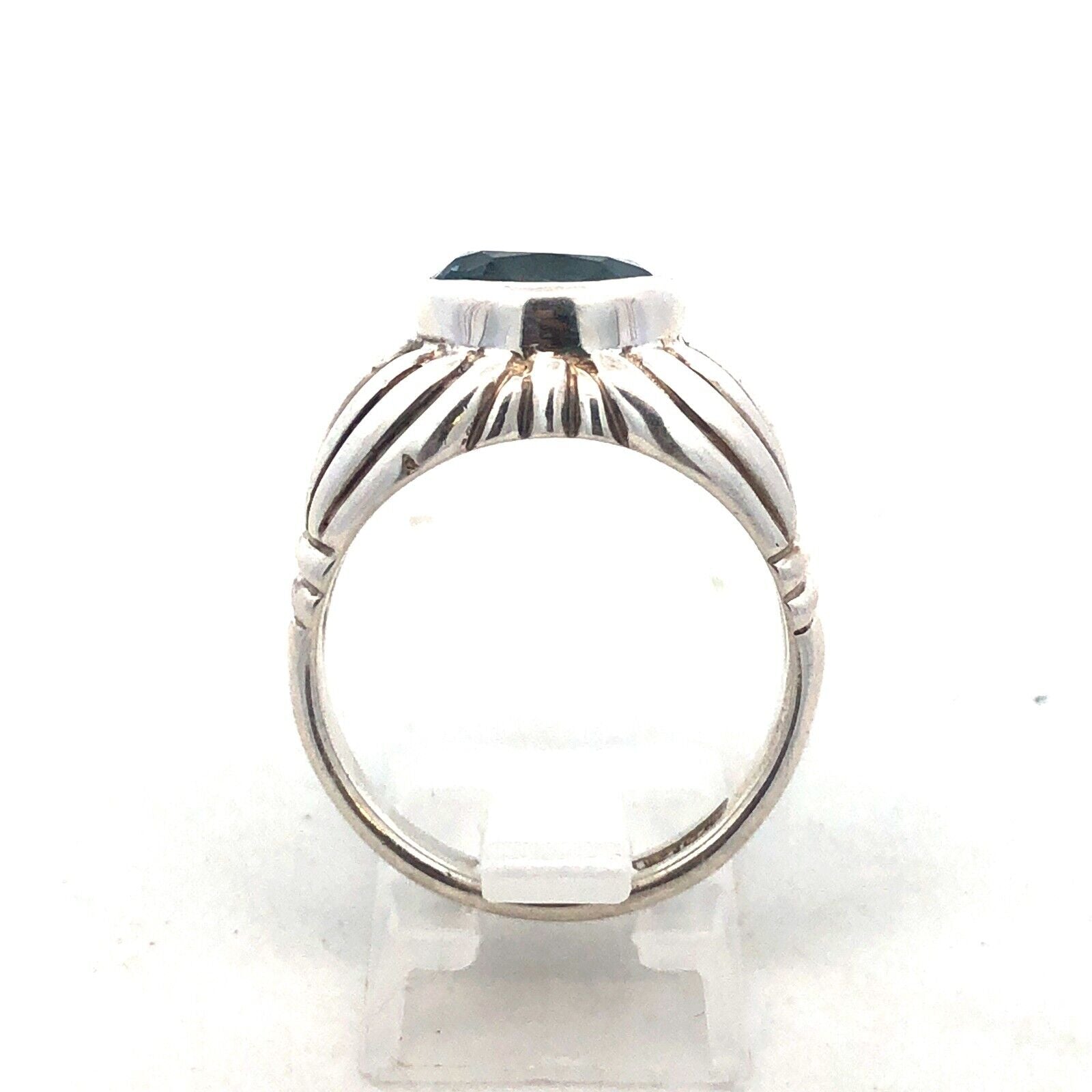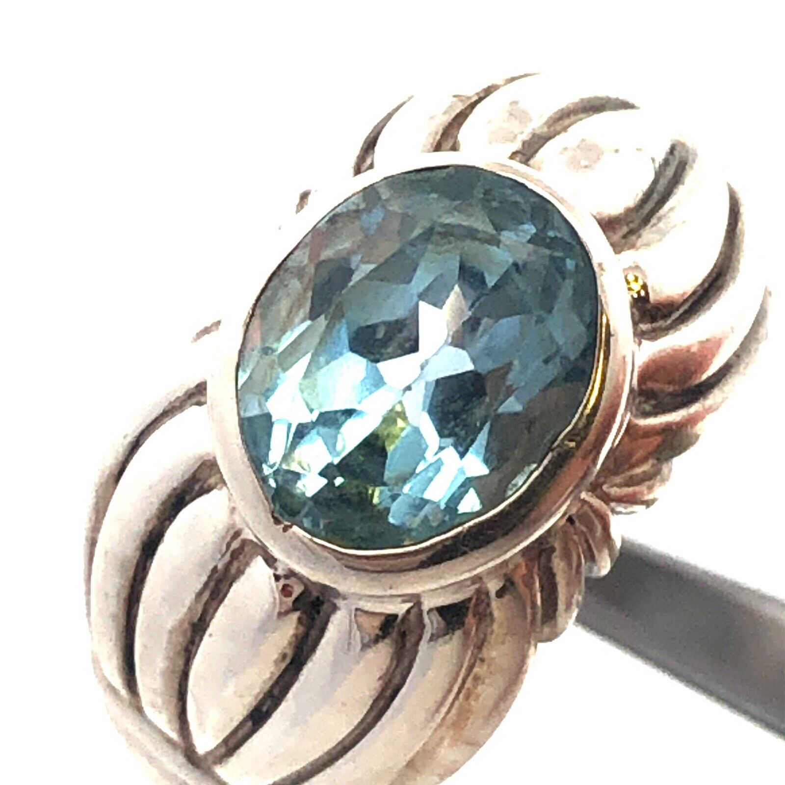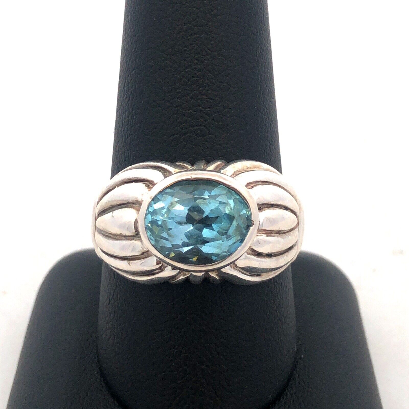 Designer Espo/Sig 925 Sterling Silver Oval Blue Topaz Chunky Textured Ring