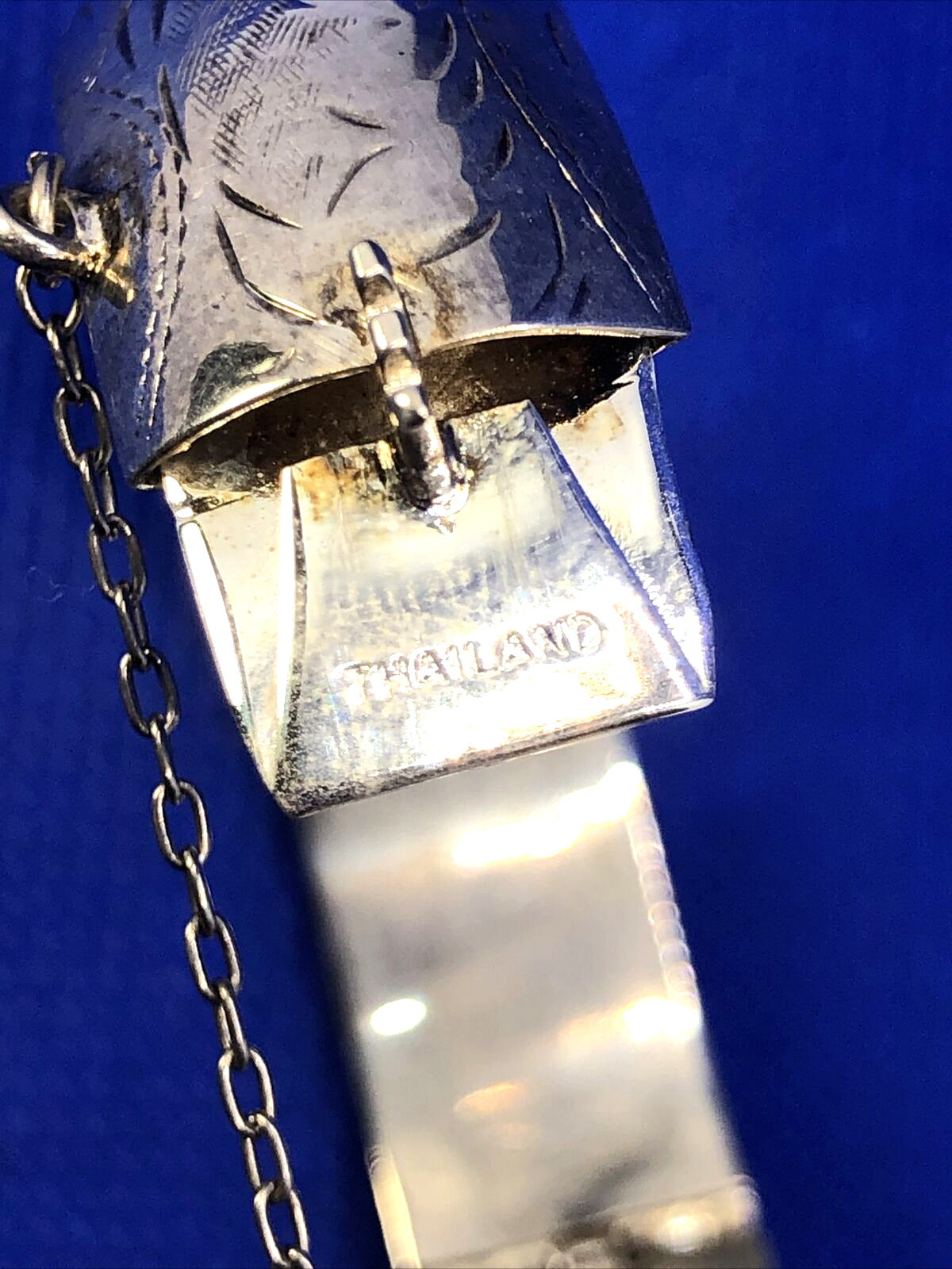 - Designer EURS 925 Sterling Silver Leaf Scroll Design Closed Hinged Cuff Bracelet