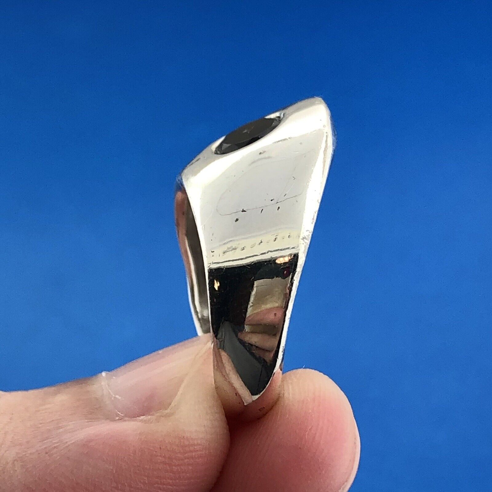 - Designer Givenchy 925 Sterling Silver Round Smoky Quartz Modernist Dome Ring
