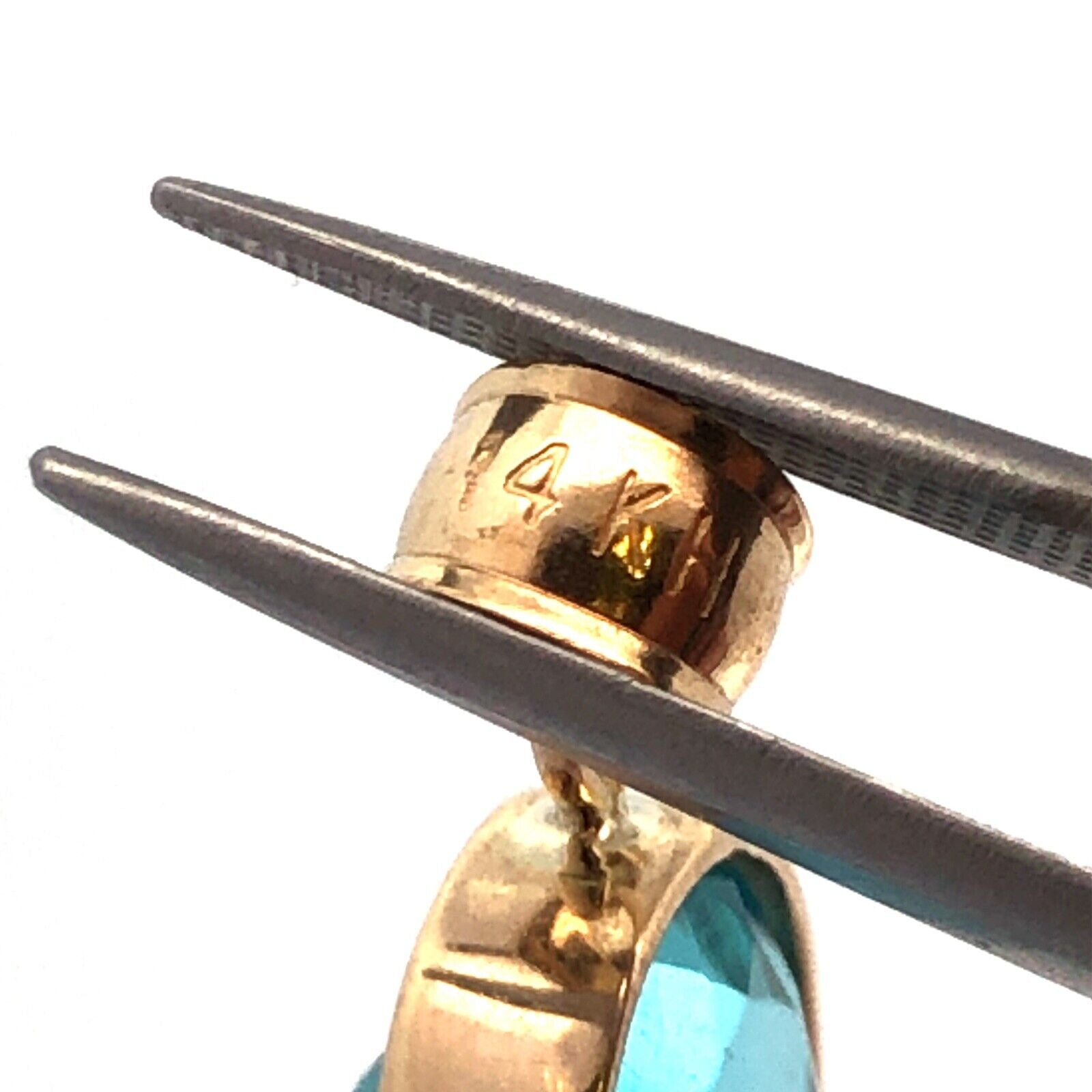Designer H 14K Yellow Gold Oval Blue Cubic Zirconia CZ Solitaire Bezel Pendant