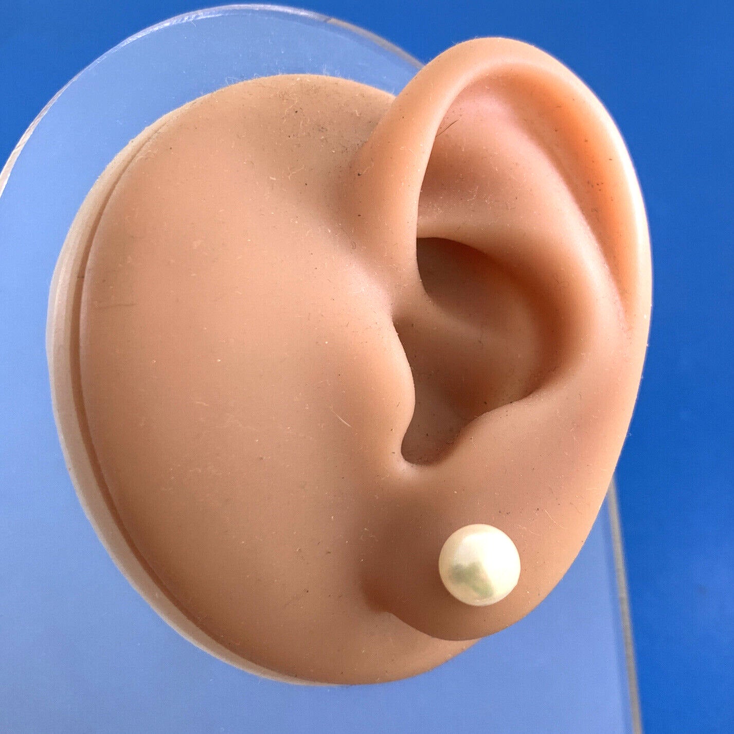 Designer Hallmarked 14K Yellow Gold Pearl Solitaire Stud Earrings