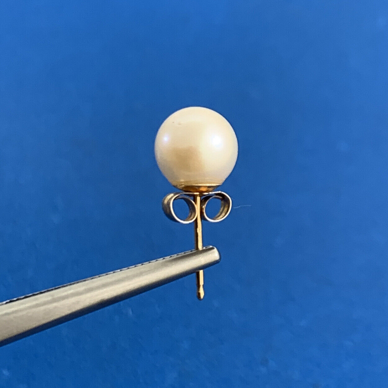 - Designer Hallmarked 14K Yellow Gold Pearl Solitaire Stud Earrings