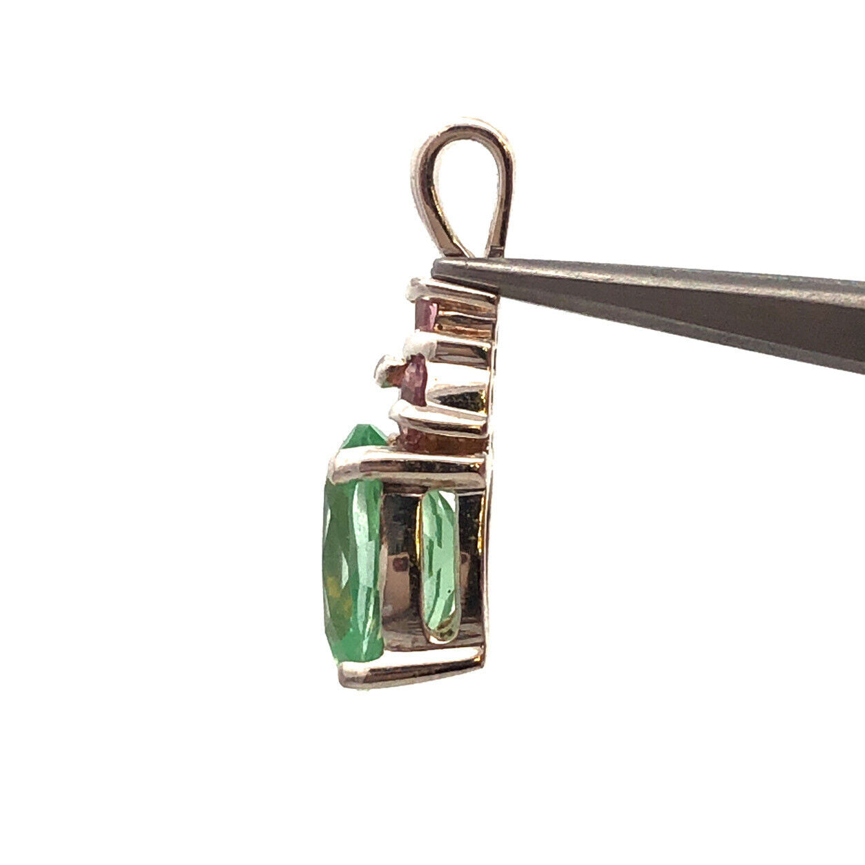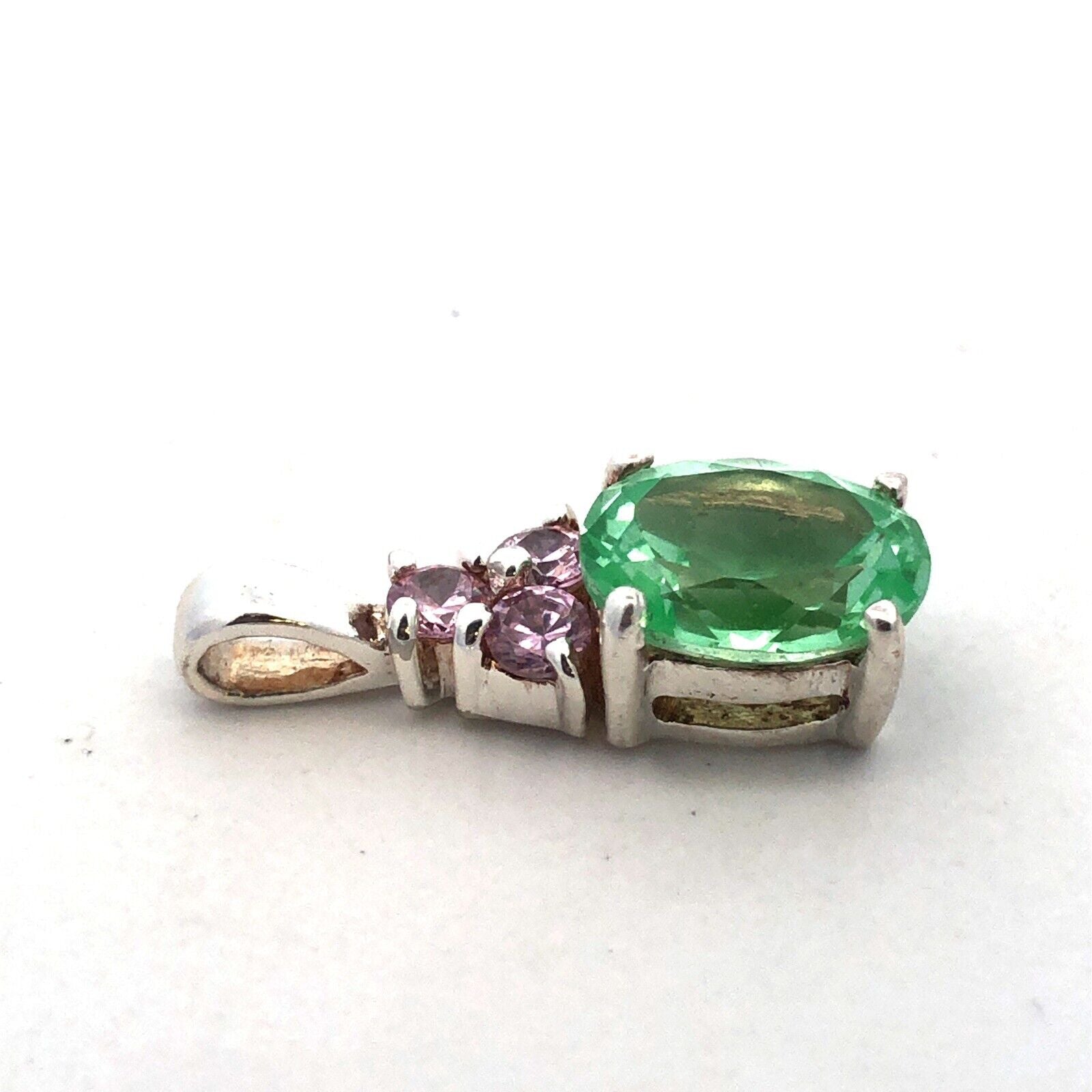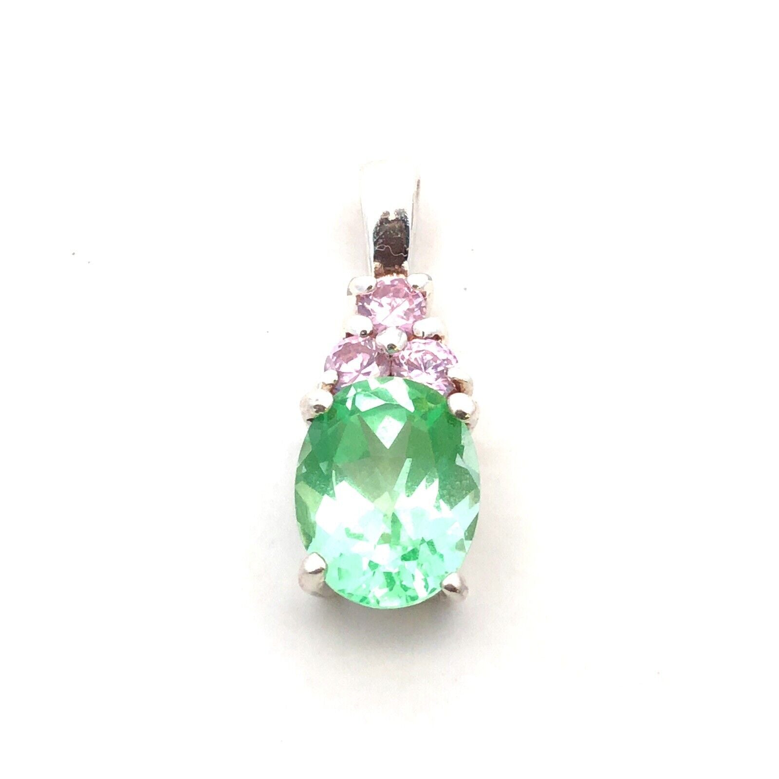 Designer HAN 925 Sterling Silver Oval Aquamarine Round Pink CZ Accent Pendant