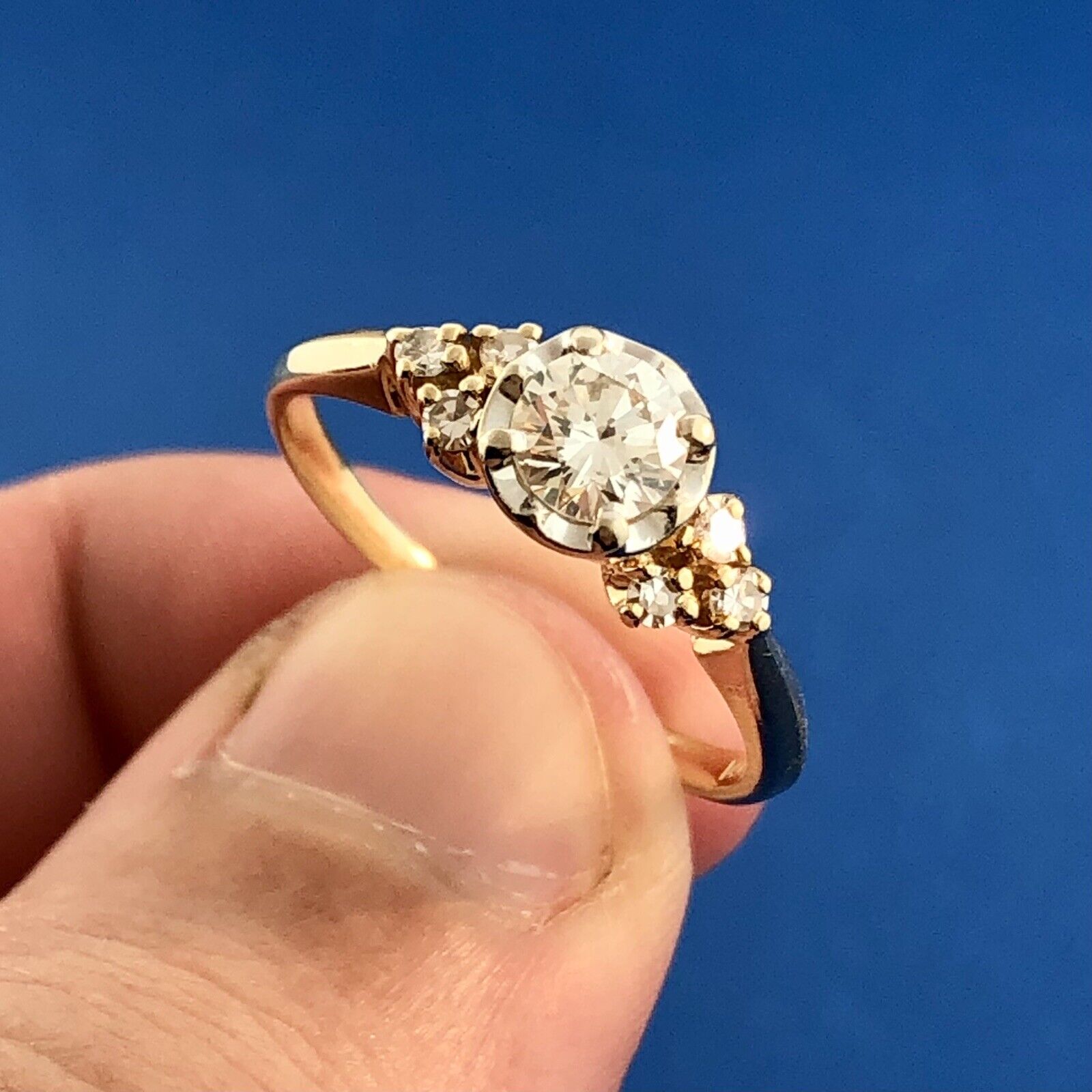 • Designer HDS 14K Yellow Gold Diamond Solitaire Accents Engagement Ring