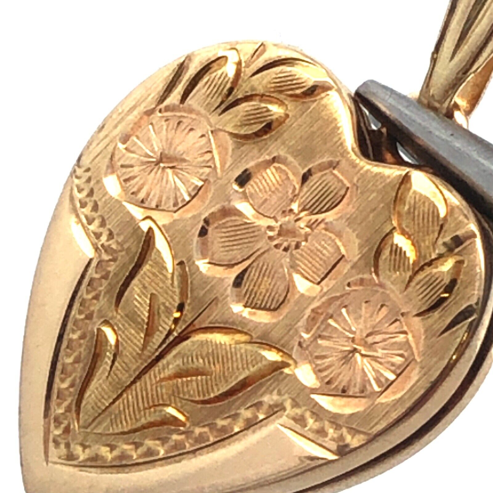 - Designer HFB 14K Yellow Gold Floral Flower Engraved Heart Photo Locket Pendant