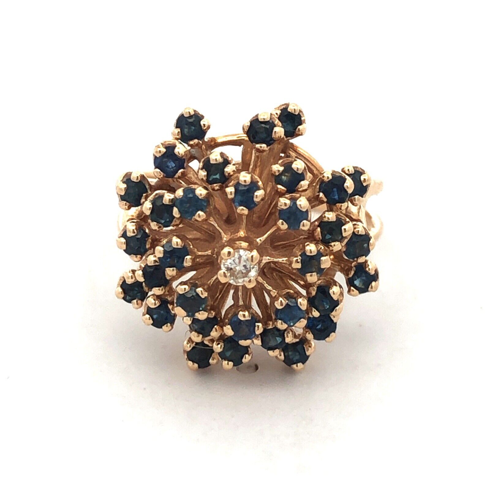 Designer HJW 14K Yellow Gold Round Sapphire Diamond Cluster Dome Cocktail Ring
