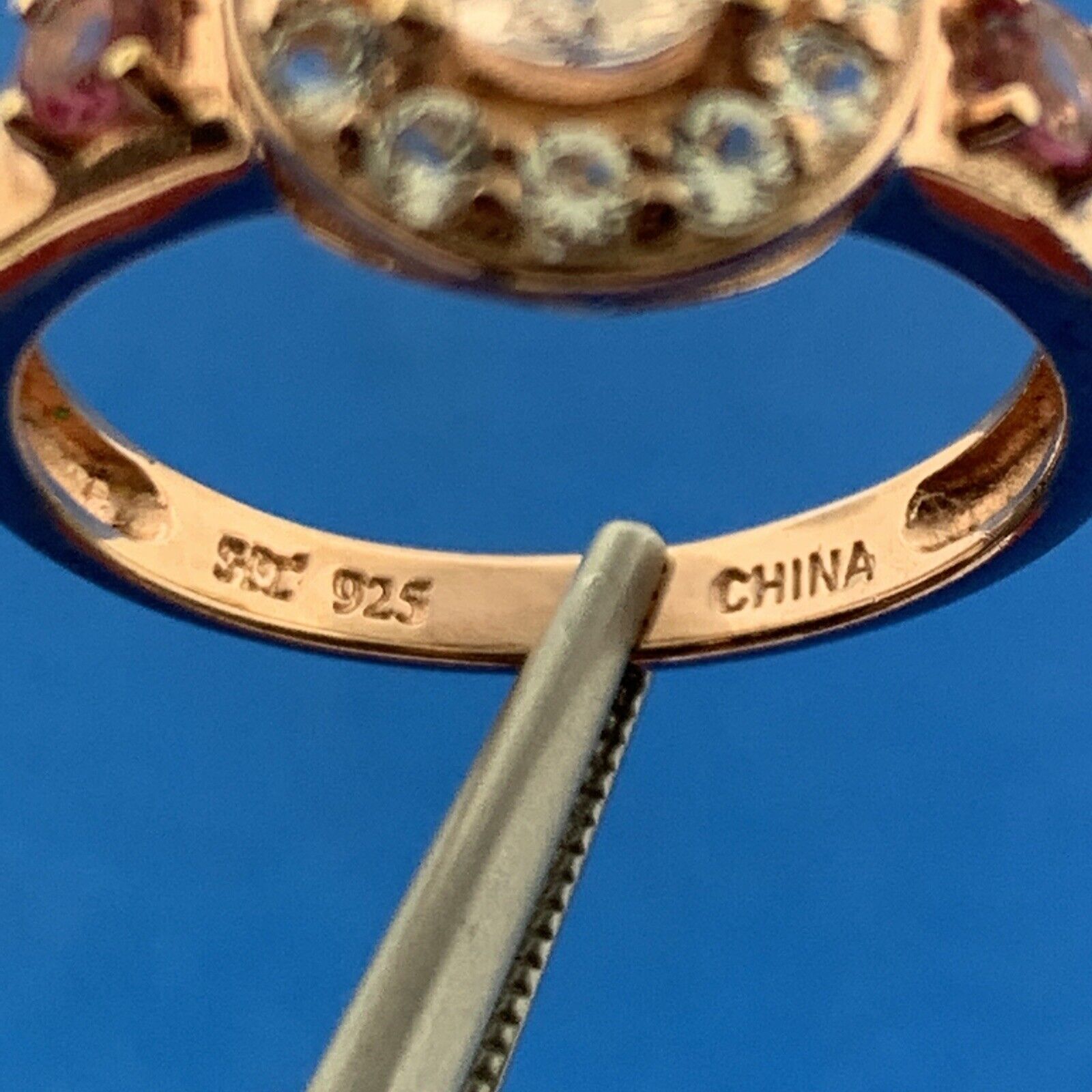 Designer HT 925 Sterling Silver Rose Vermeil Amethyst White Topaz Cocktail Ring