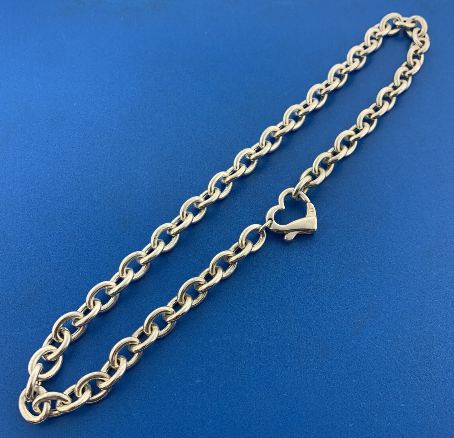 - Designer Italian Sterling Silver 925 Oval Link Open Heart 15" Chain Necklace
