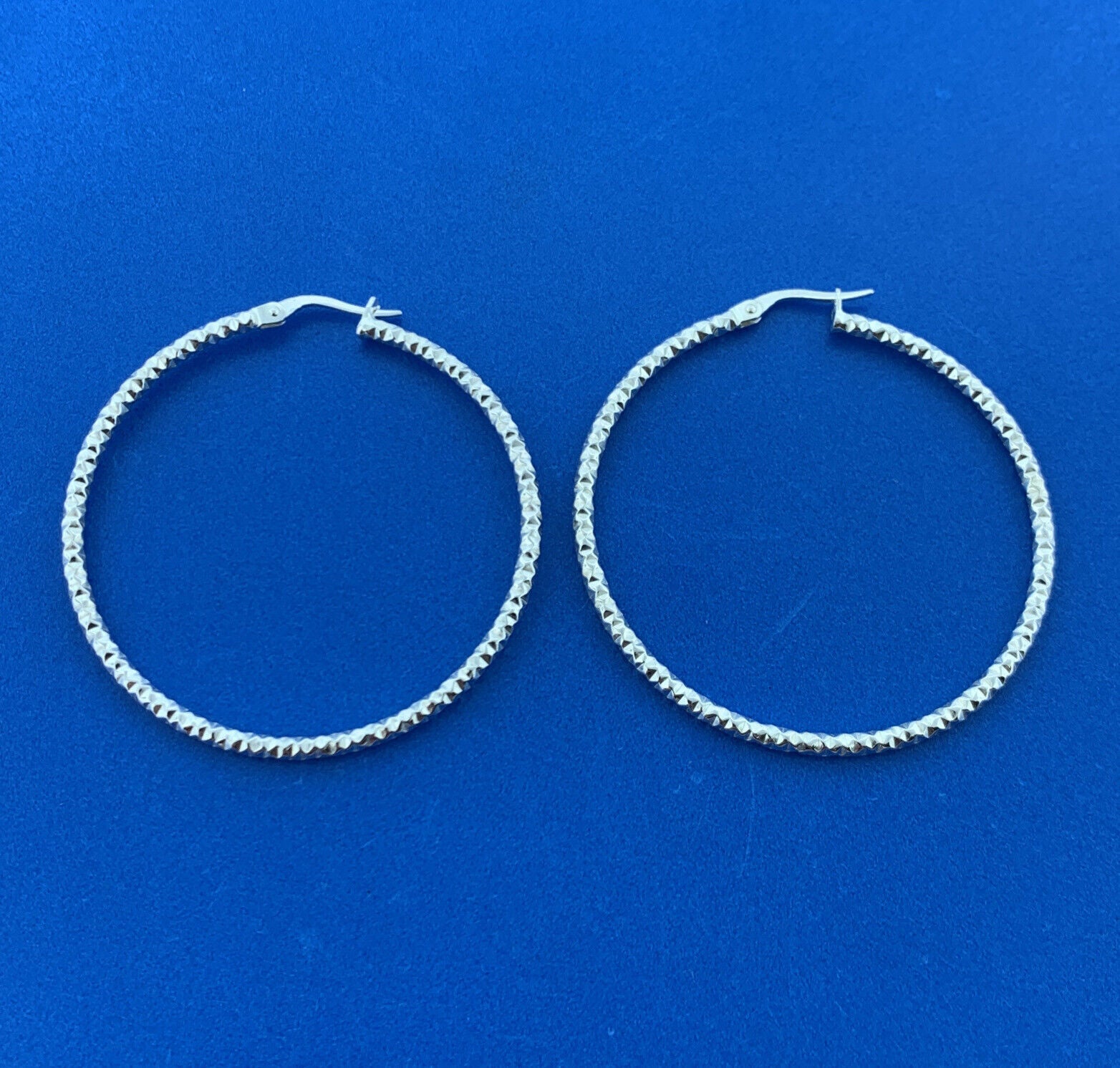 - Designer Italy 925 Sterling Silver Classic Chic Fancy Etched Large Hoop Earrings