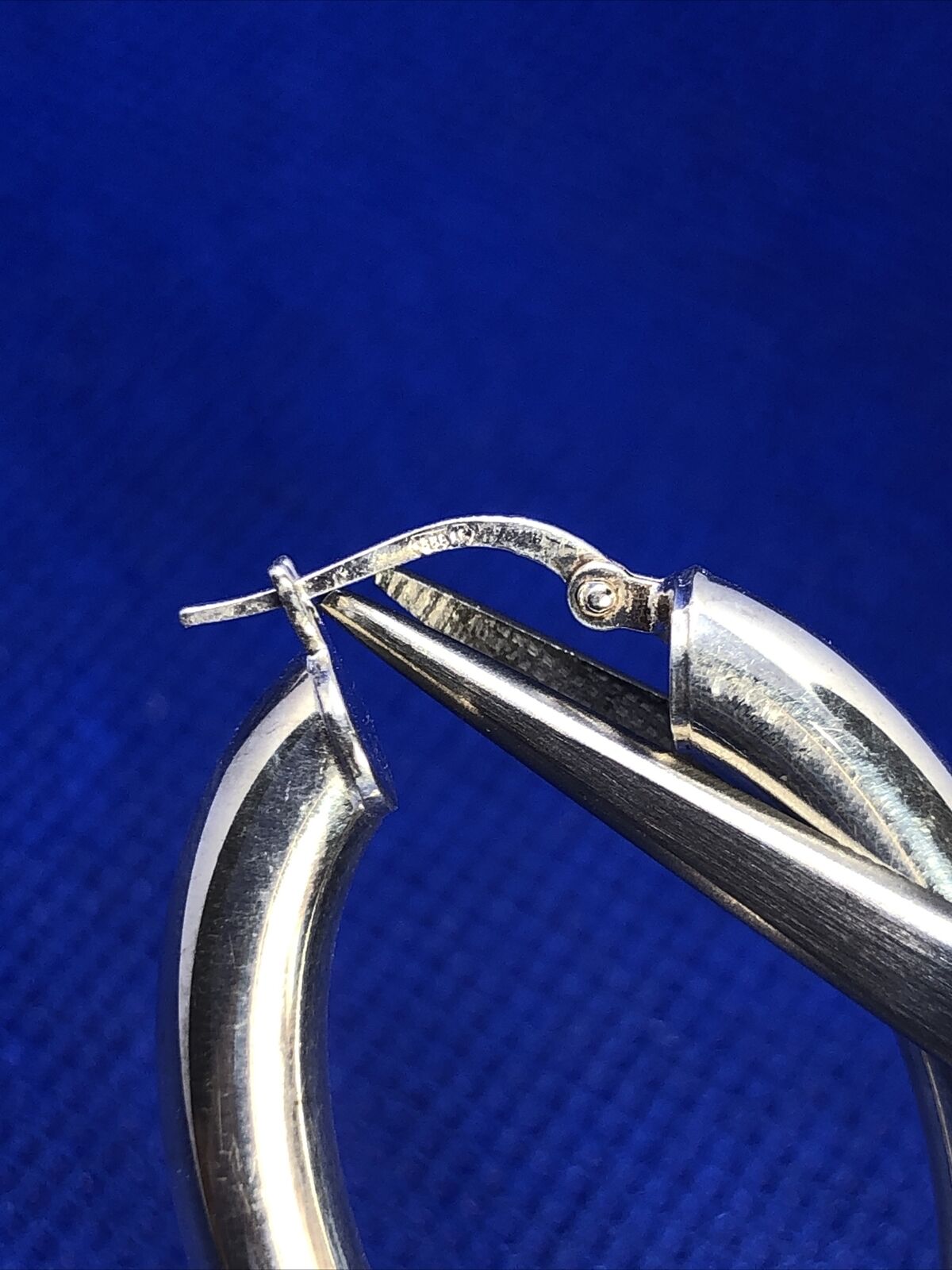 - Designer Italy 925 Sterling Silver Large Polished Tubular Oval Hoop Earrings