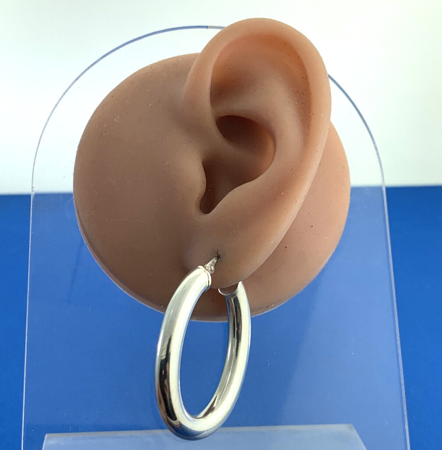 Designer Italy 925 Sterling Silver Large Polished Tubular Oval Hoop Earrings