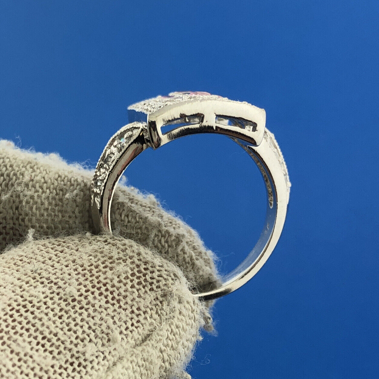 Designer JC Sterling Silver 925 Diamond Pink Yellow Statement Cocktail Ring