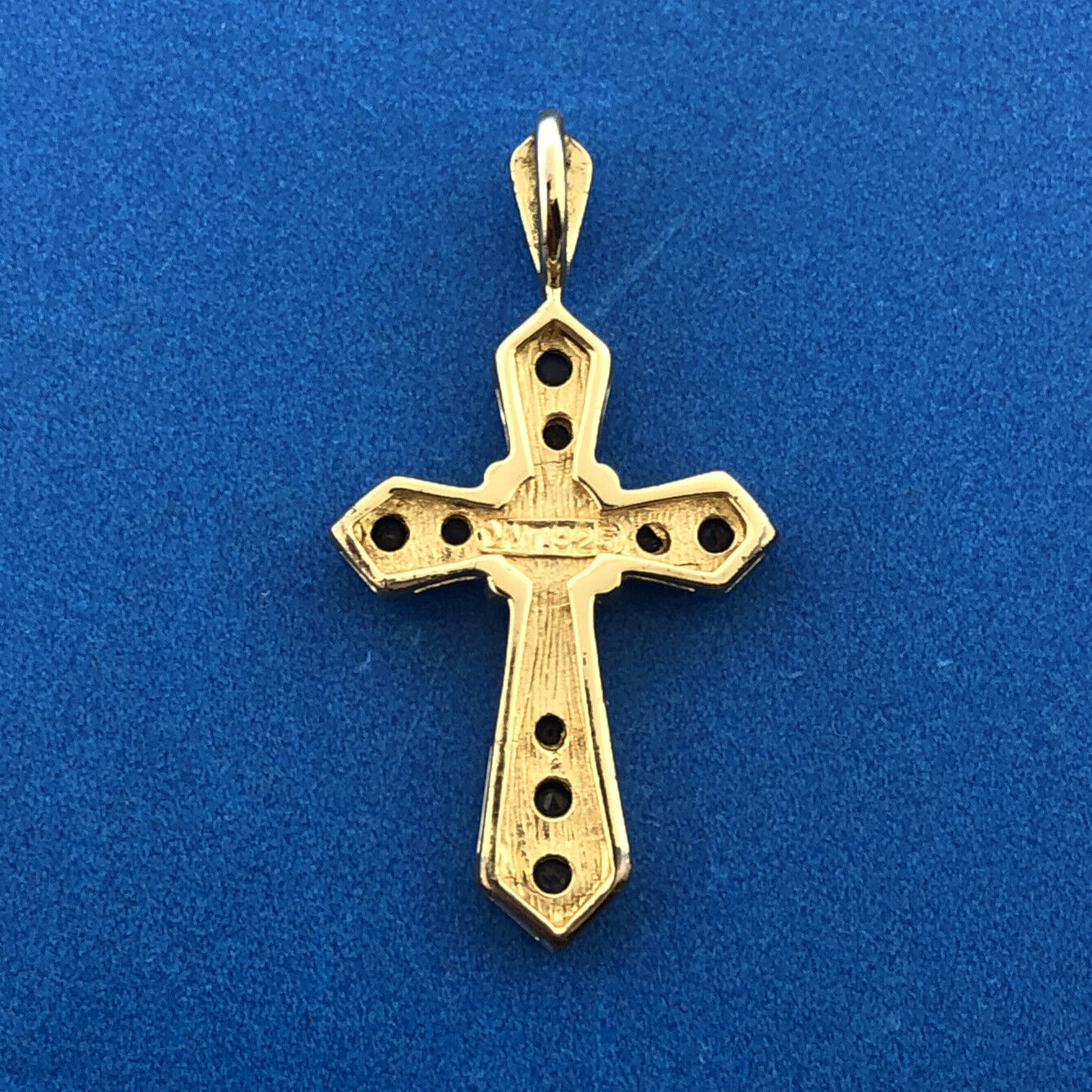 - Designer JJT Vermeil Sterling Silver 925 Round Cut Sapphire Cross Faith Pendant
