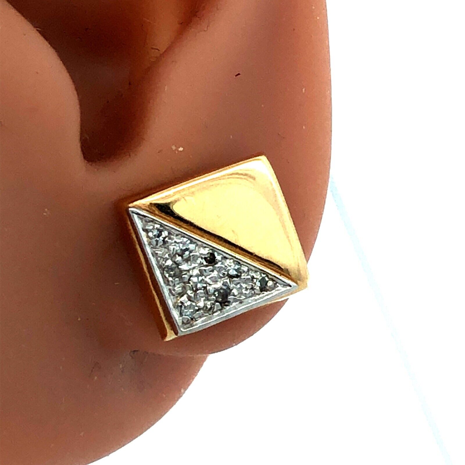 - Designer JW 14K Yellow Gold Diamond Square Retro Modernist Stud Earrings