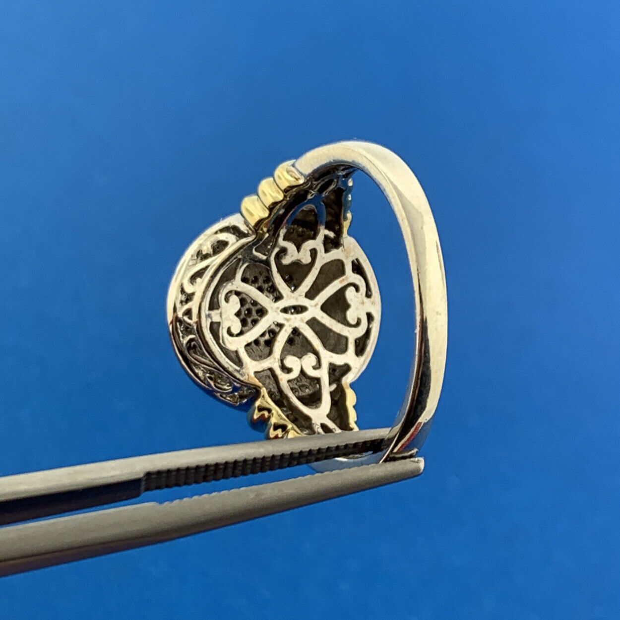 - Designer 925 Sterling Silver Vermeil Two Tone Pave Diamond Statement Dome Ring